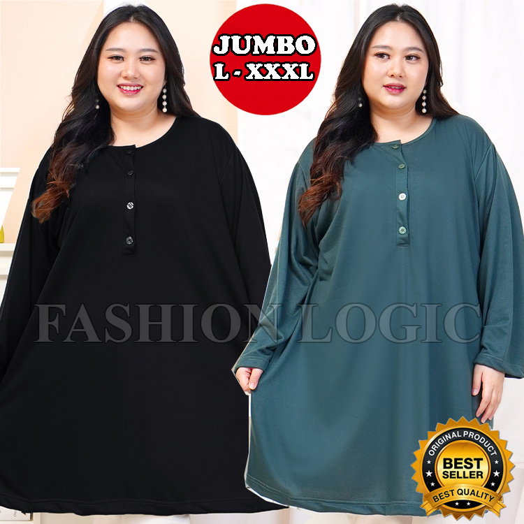 Tunik Atasan Wanita Kaos Jumbo Baju Busui lengan panjang kancing buka LD 120 - LD 130 - LD 140