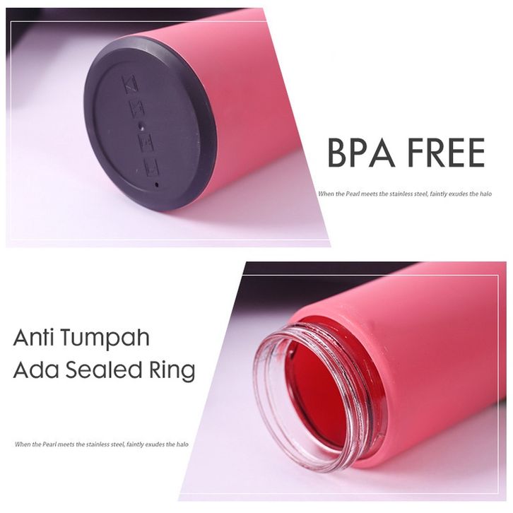 Paus Biru - Botol Minum Kaca Six Oup Polos/Beling Cover Plastik Logo/Tumbler Unik Motif Polos 450ML