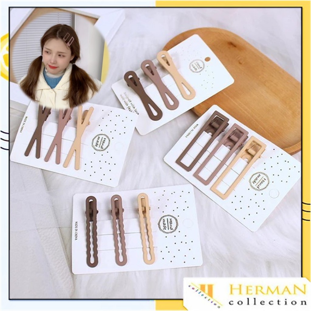 Jepit Rambut Klip Korea Vintage 3 in 1 Hairclip Wanita Korean Cute Jepitan Lucu Karakter Earth Tone Set Jepit Rambut Poni