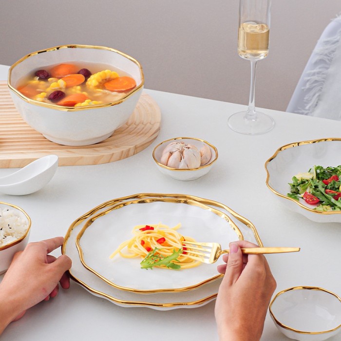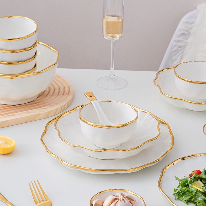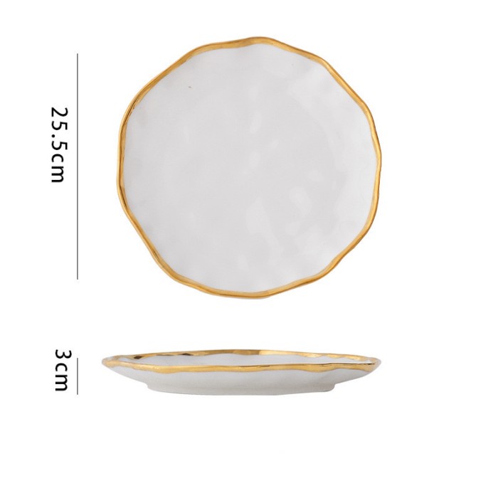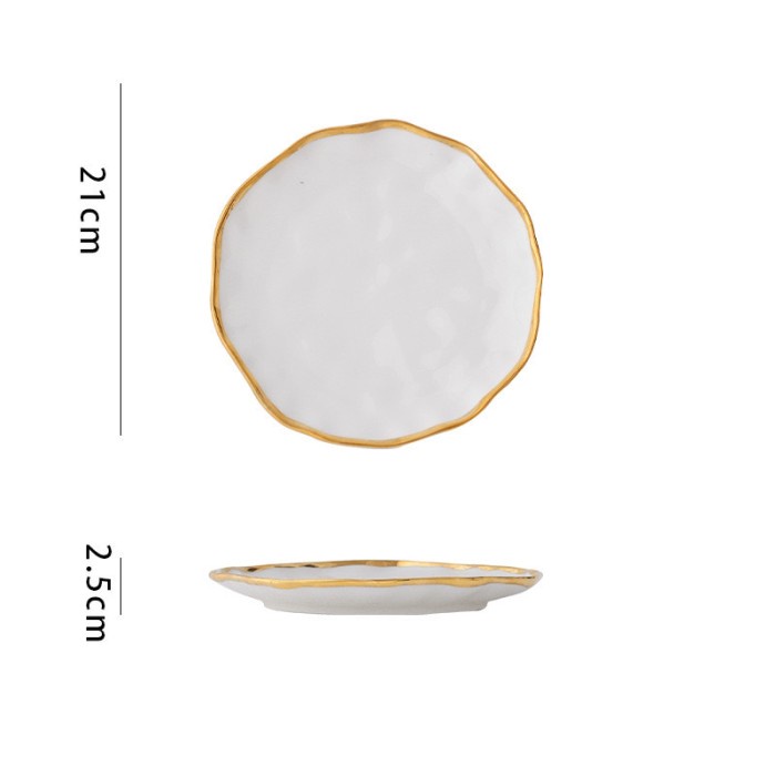 WAVY Plate piring mangkok keramik putih EM45 gelombang cantik sultan