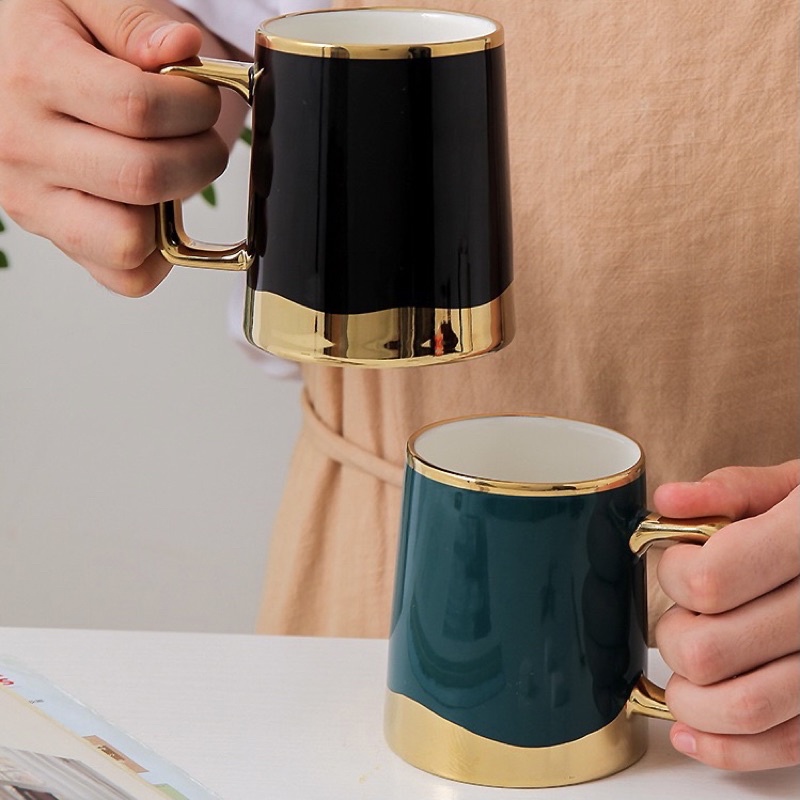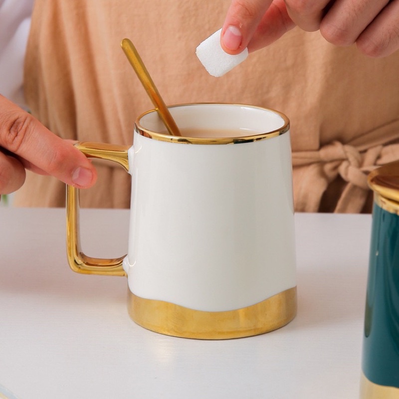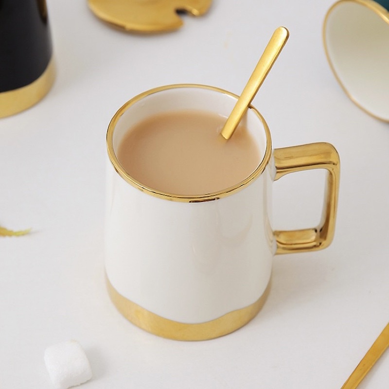 Luna Mug / Gelas minum cantik keramik sultan tutup sendok EM45 mewah