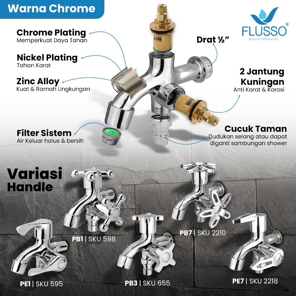 Kran Air Kran Cabang Double Baling Kran Shower Kamar Mandi Flusso