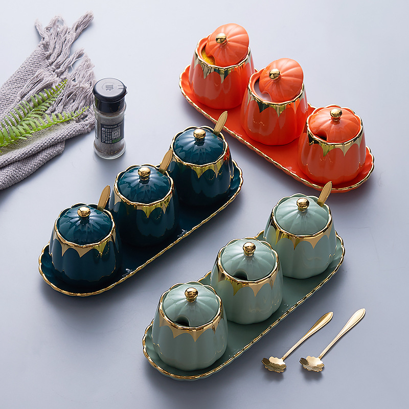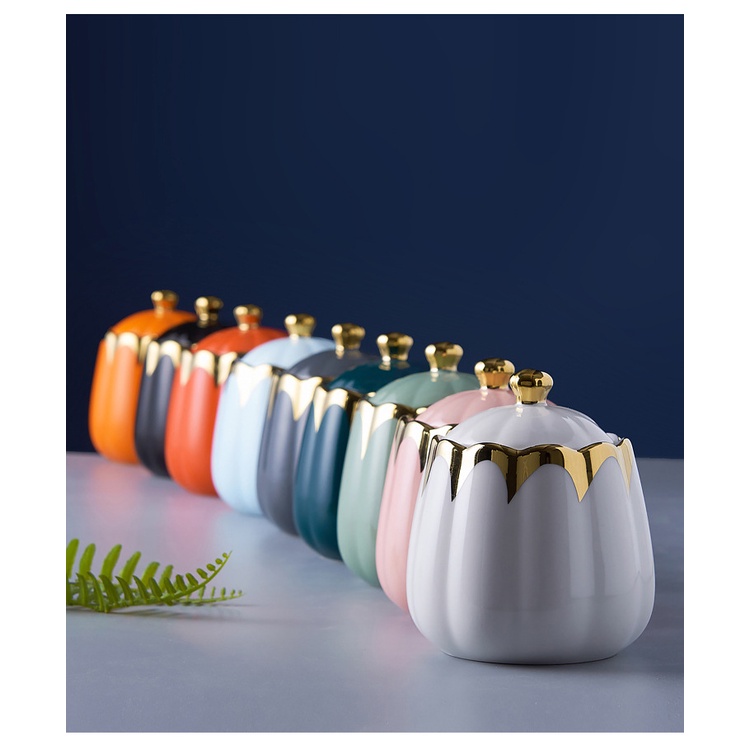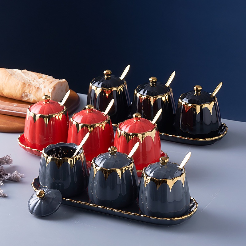 ASHOME Tempat Bumbu Dapur Keramik List GOL& Elegan / Tempat Penyimpanan Bumbu Dapur List GOL&