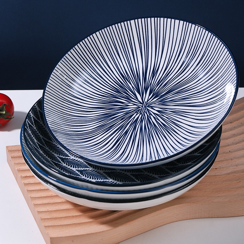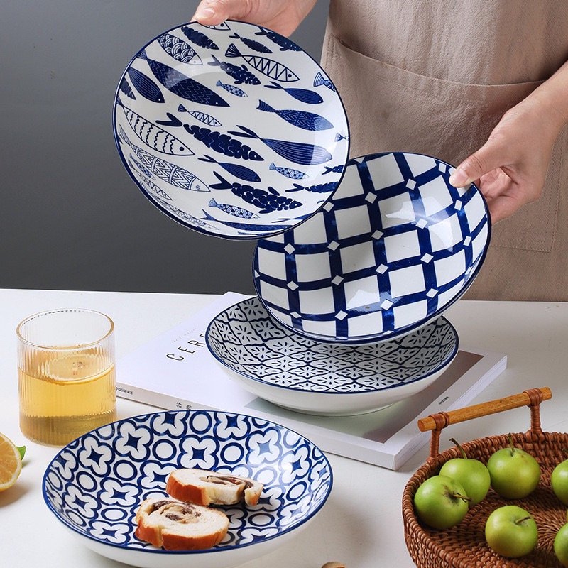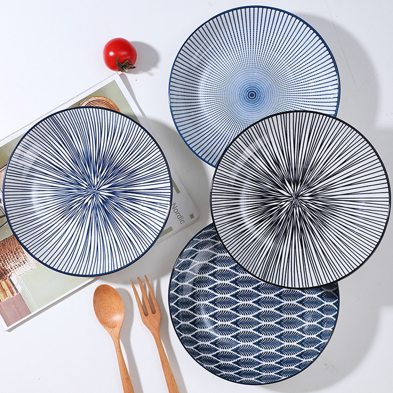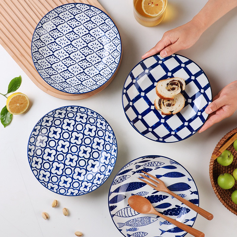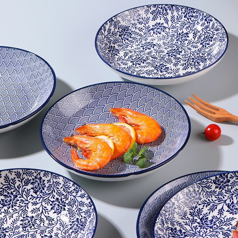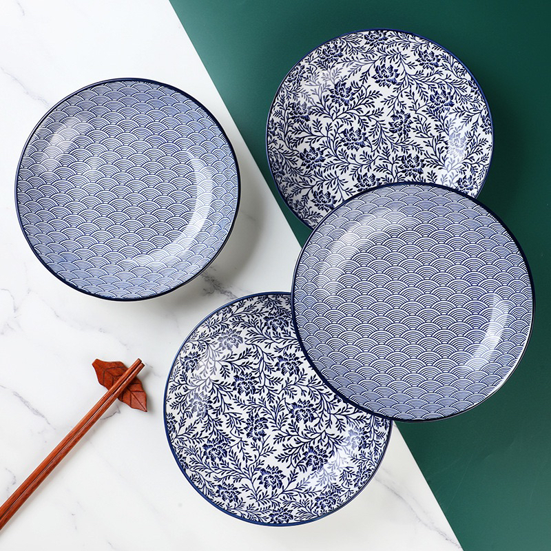 Japanese BLEU plate piring makan keramik motif jepang biru astetik