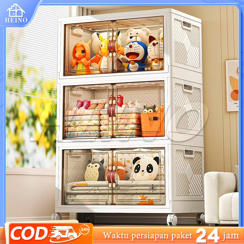 Lemari Penyimpanan Plastik HEINO 45 55 65 75CM Multi layer Roda Transparan