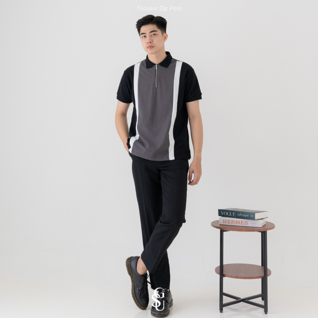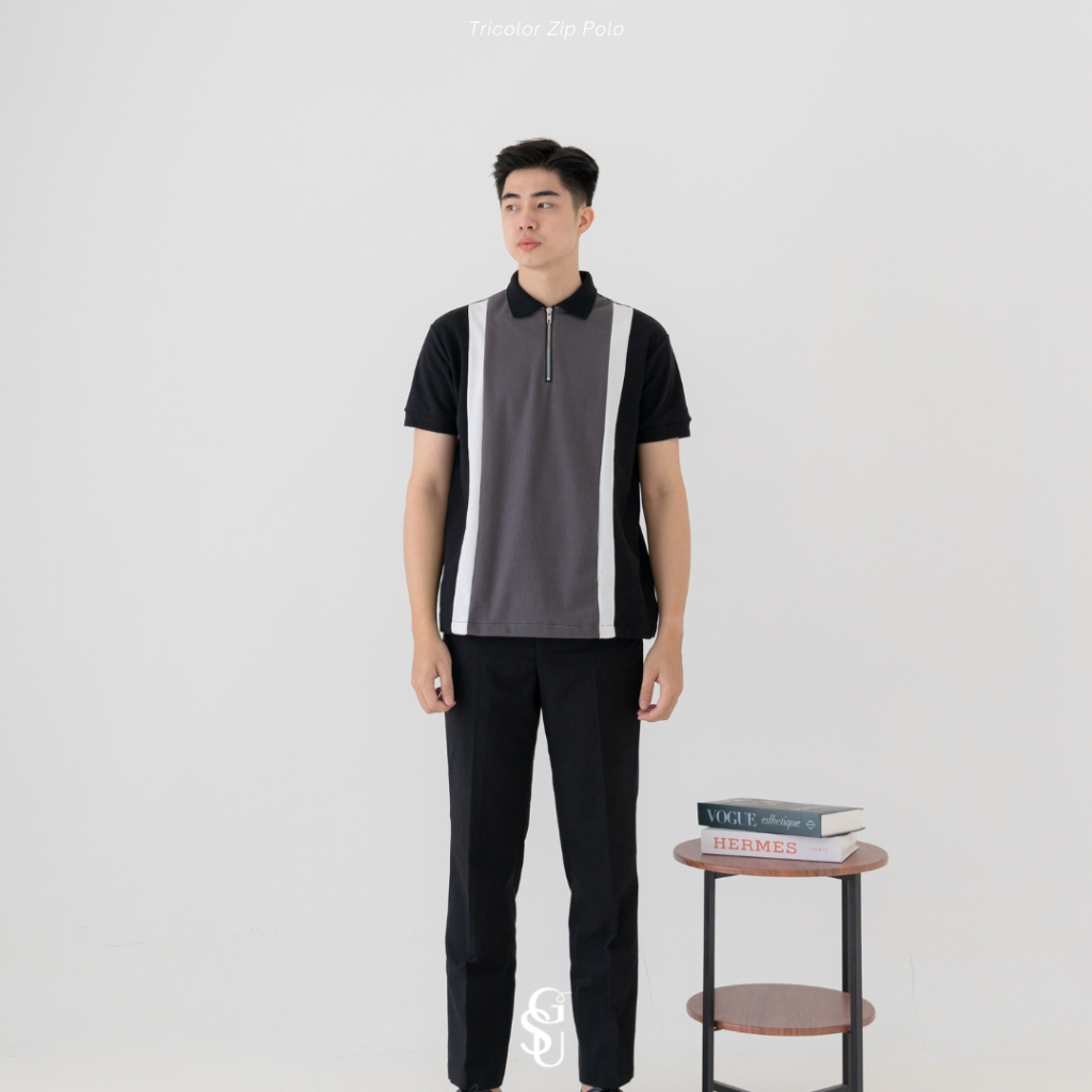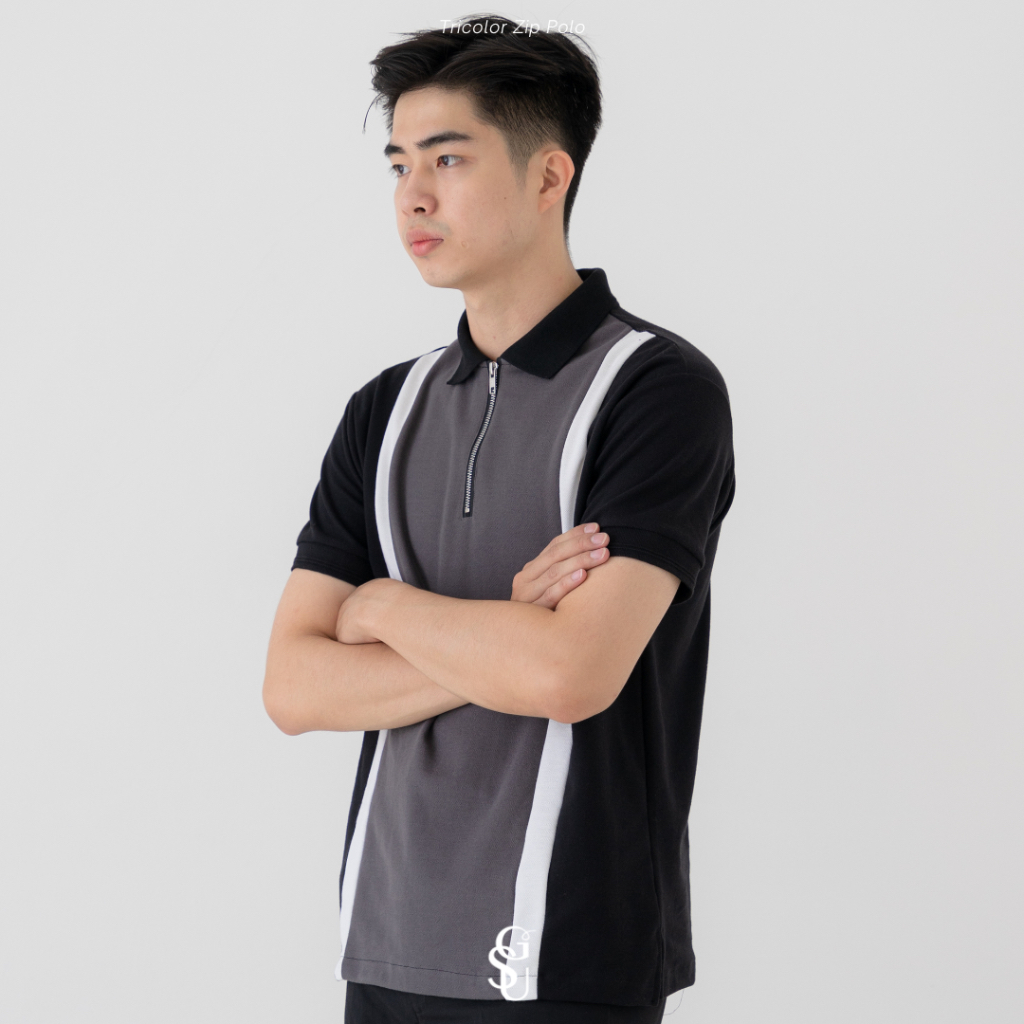 Giseu - Tricolor Zip Polo Pria Lacoste Hitam