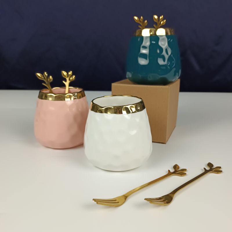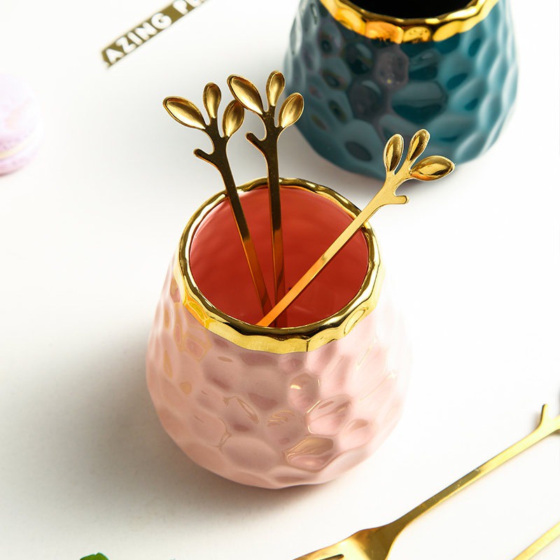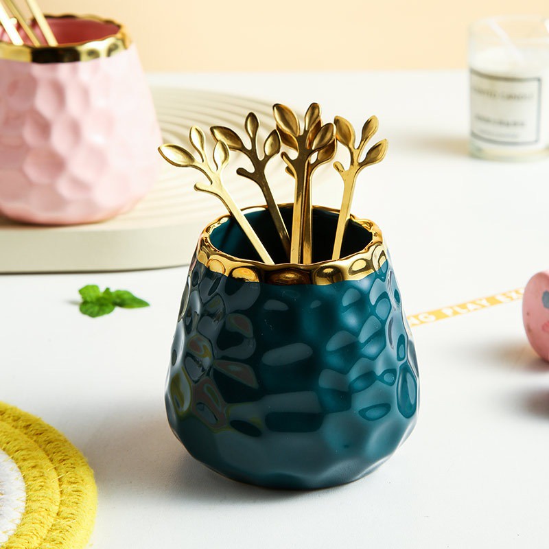 ASHOME Tempat Sendok Kue Keramik Motif Totol Glossy List GOL& / Tempat Sendok Keramik Elegan / Tempat Sendok Dessert