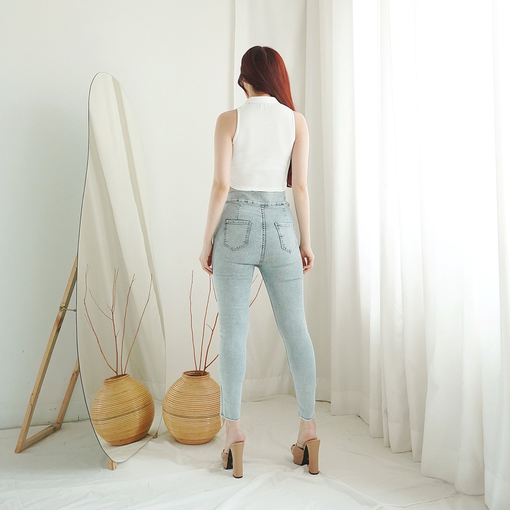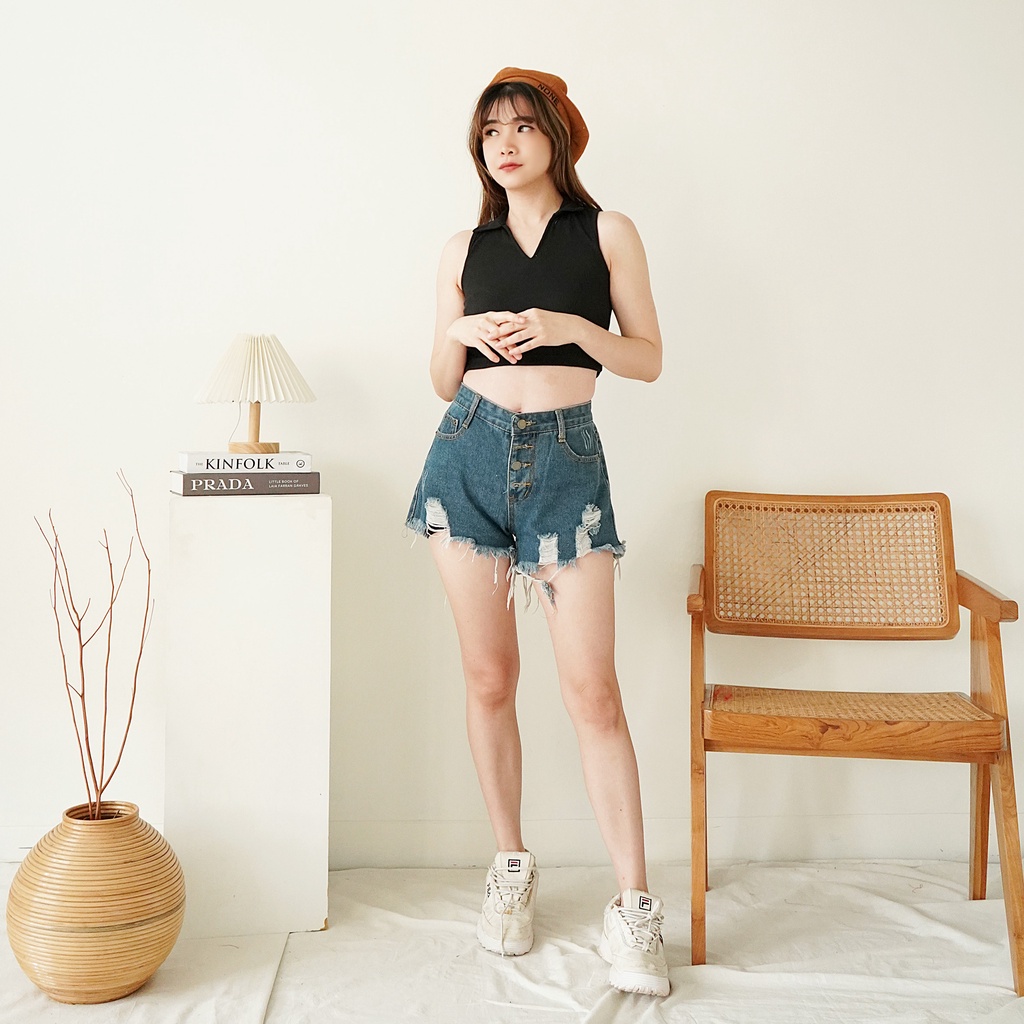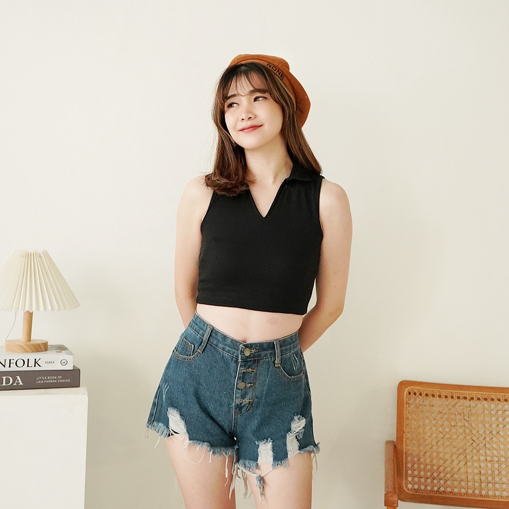 Tank Top Crop V Neck Wanita Atasan Stylish
