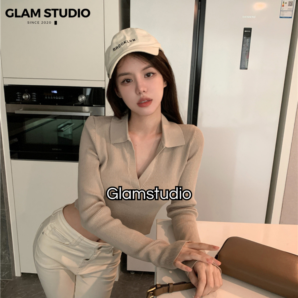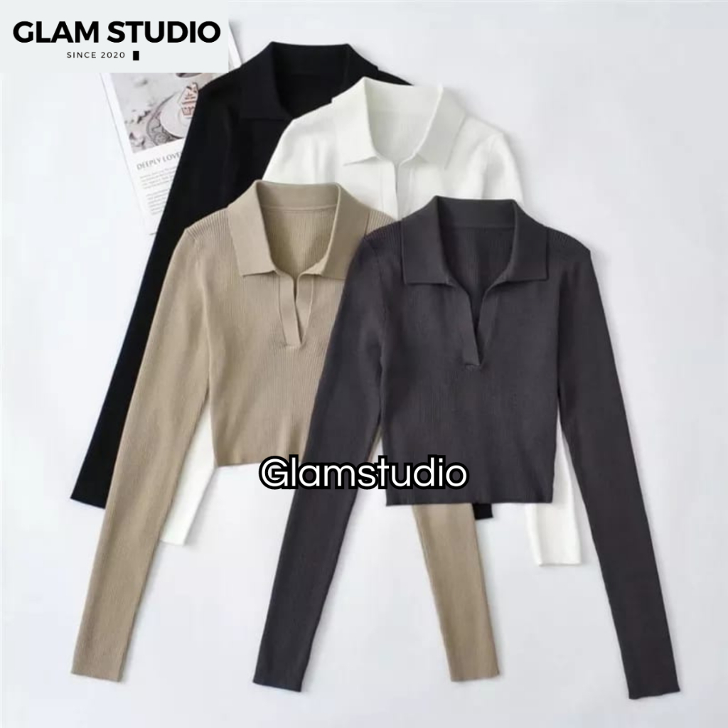Glamstudio Crop Top Lengan Panjang Long Sleeve V Model Kaos