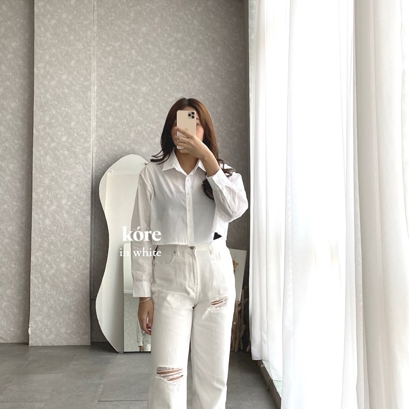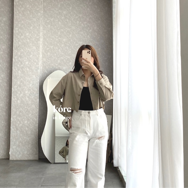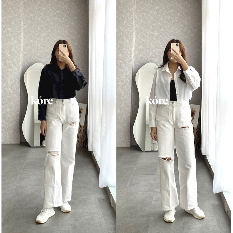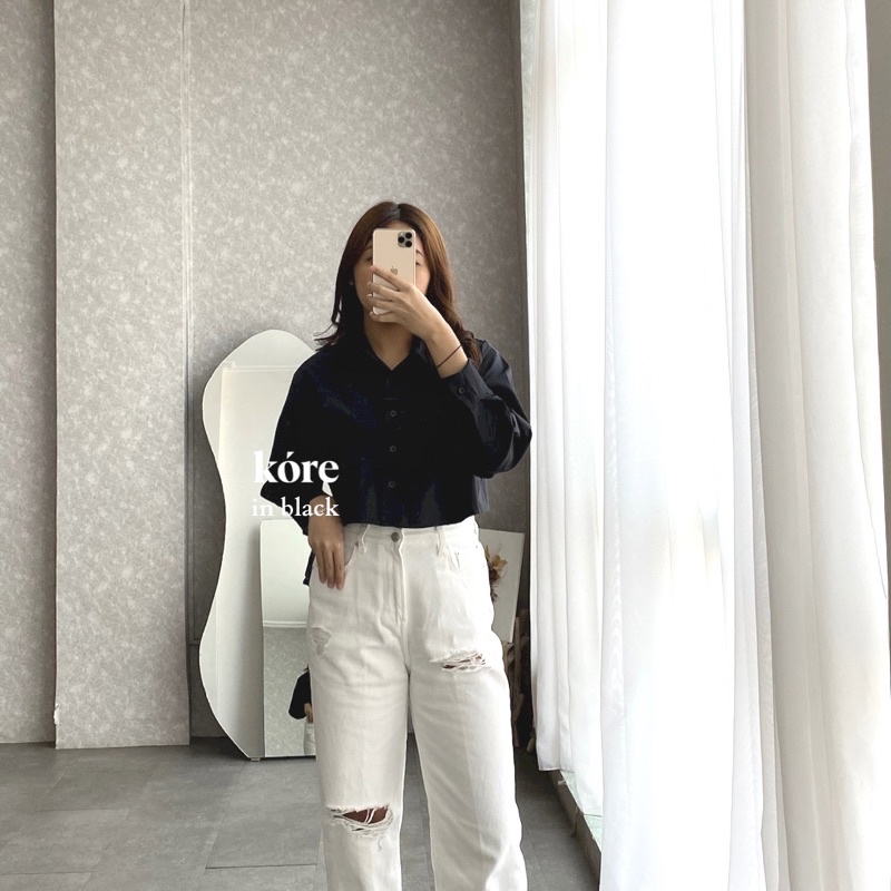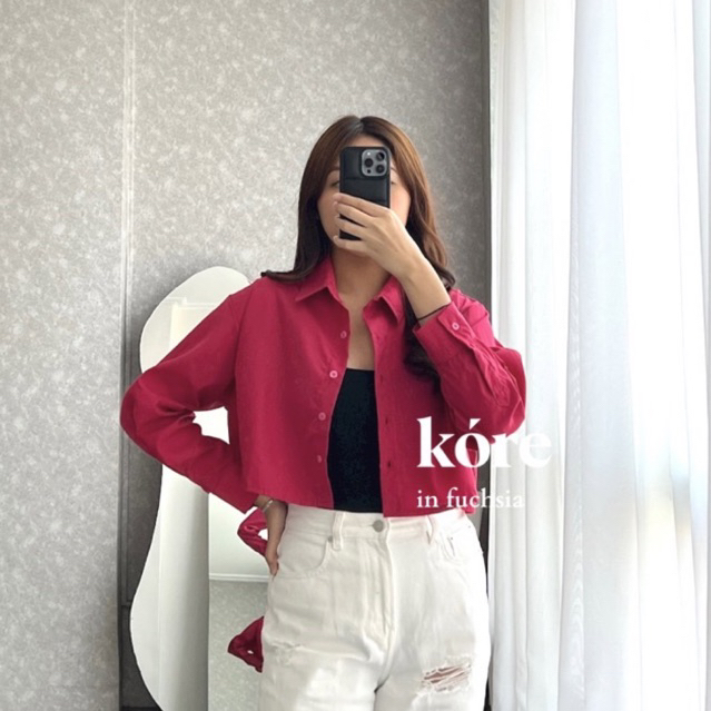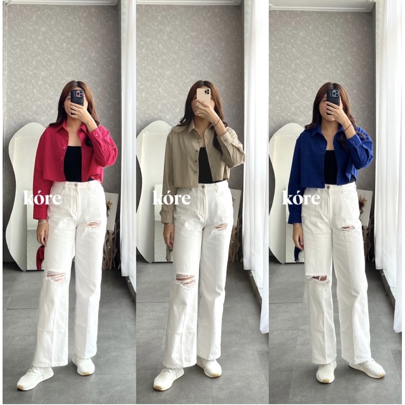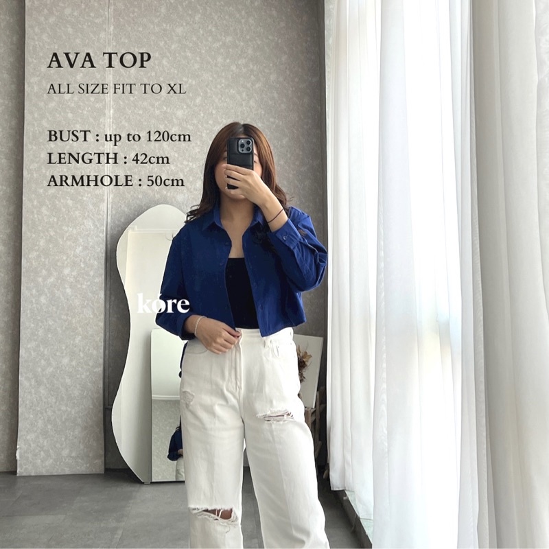 Oversize Crop Top Kemeja Lengan Panjang Polos Bahan Cotton Poplin dari Ava Top