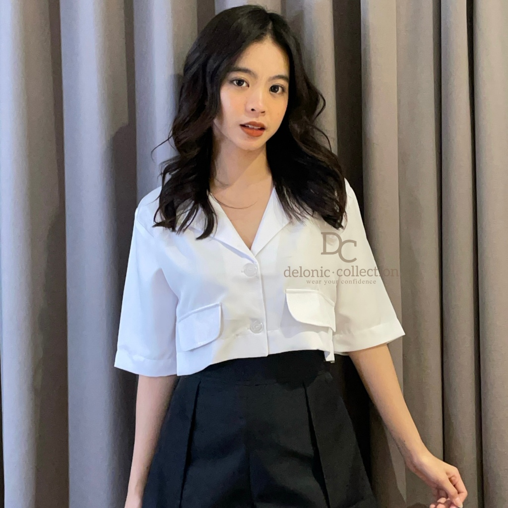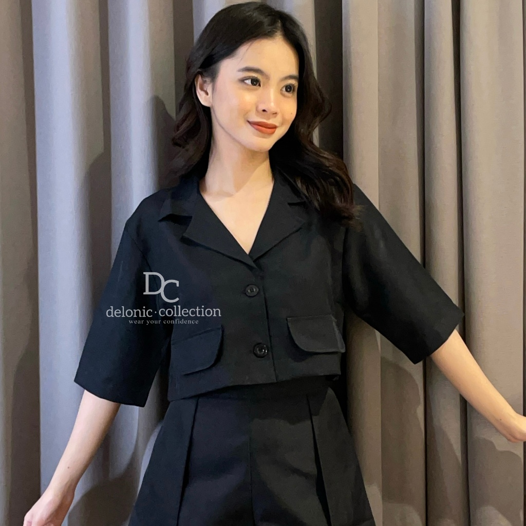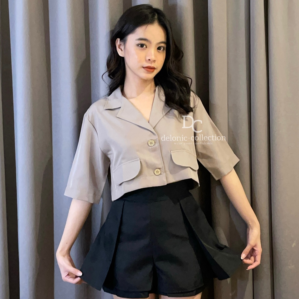 V-Neck Blouse Crop Blazer Twill Atasan Wanita Fashion Korea dari Hennesy