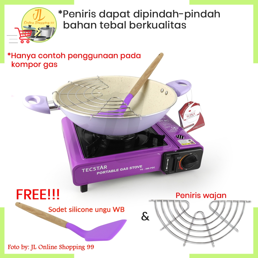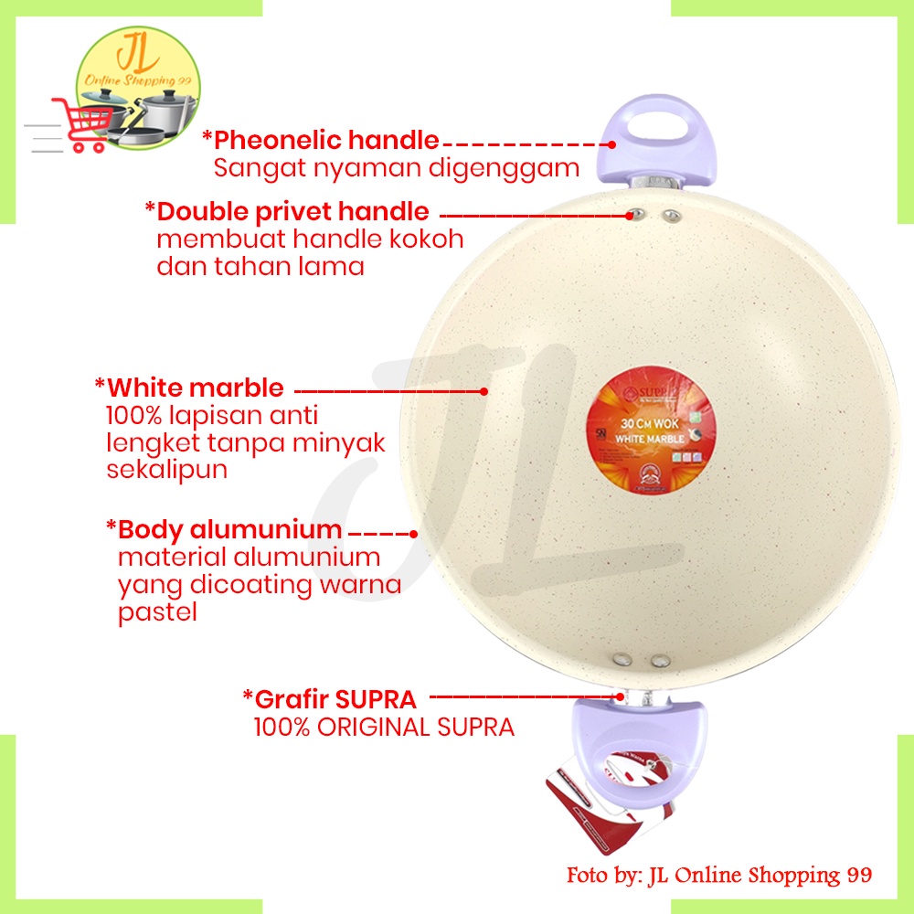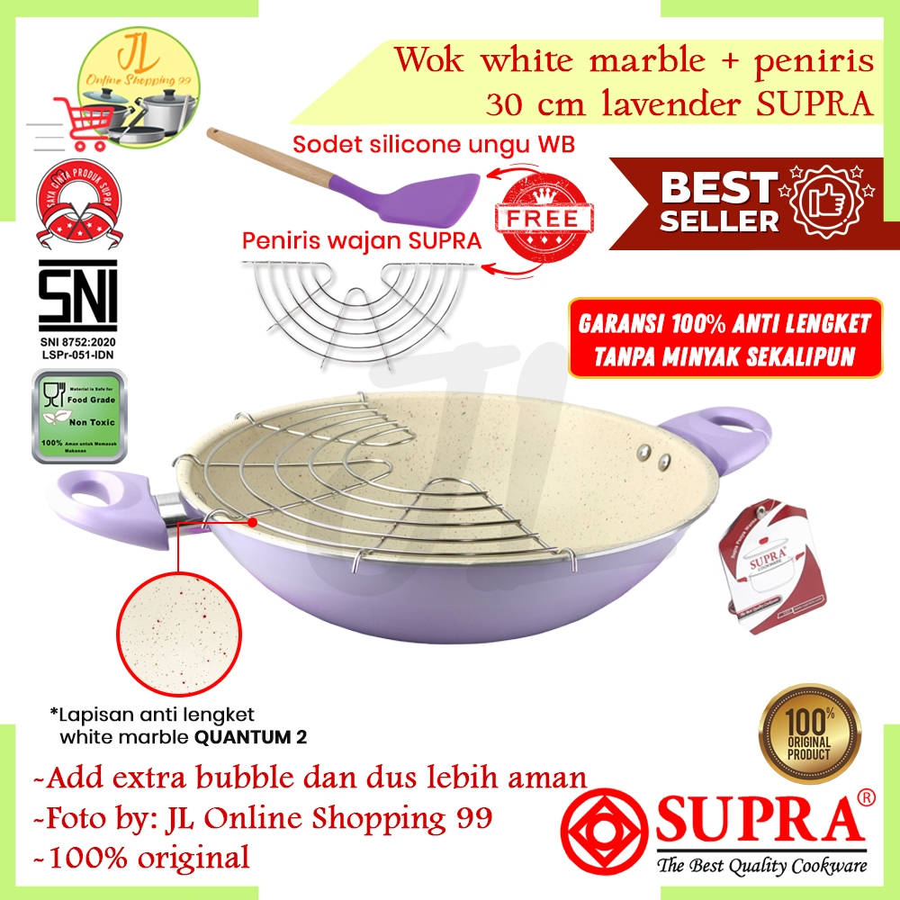 Wok set white marble pastel Lavender series + peniris SUPRA / wajan penggoreng anti lengket