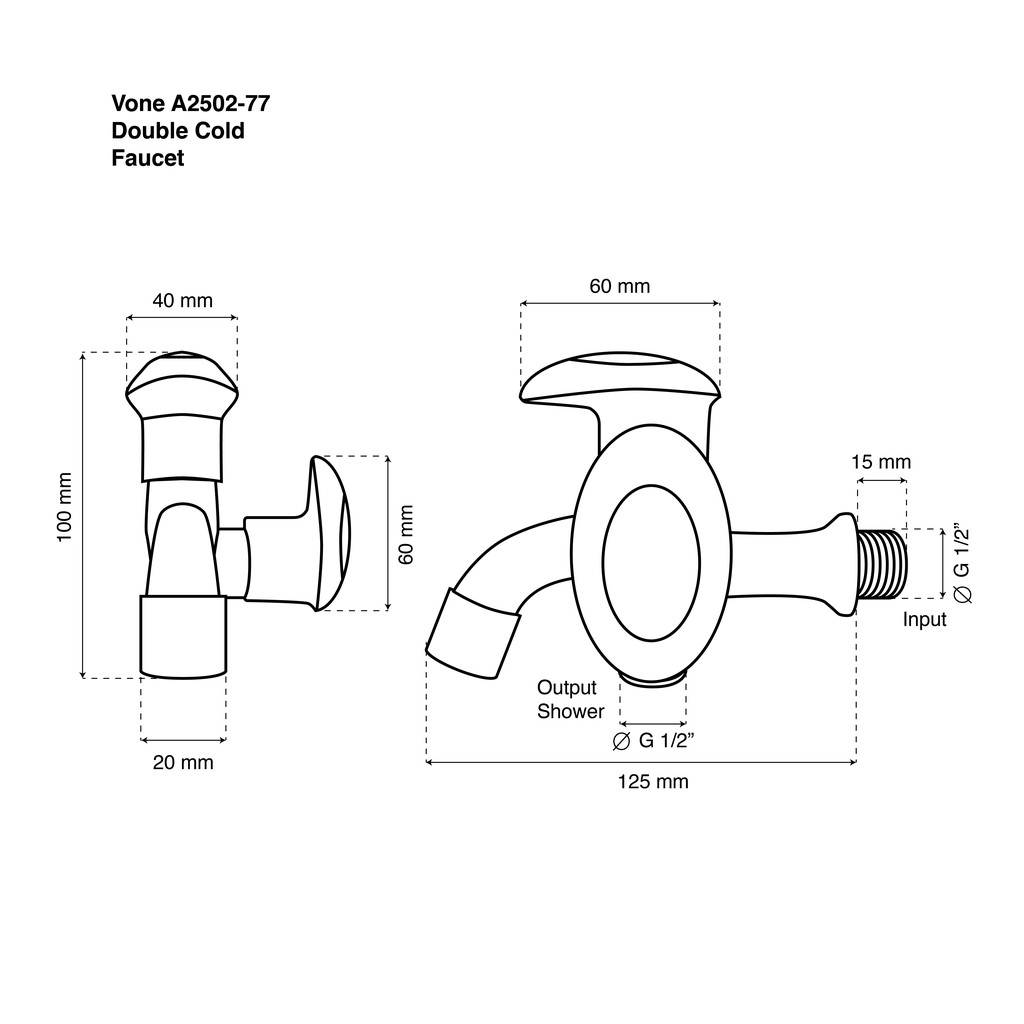 Kran Cabang Double Shower Mandi Bak Air Plastik ABS Chrome VONE A1402 77