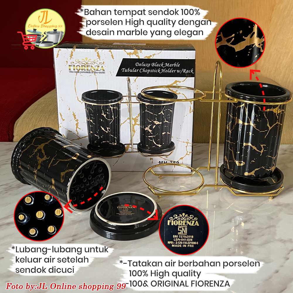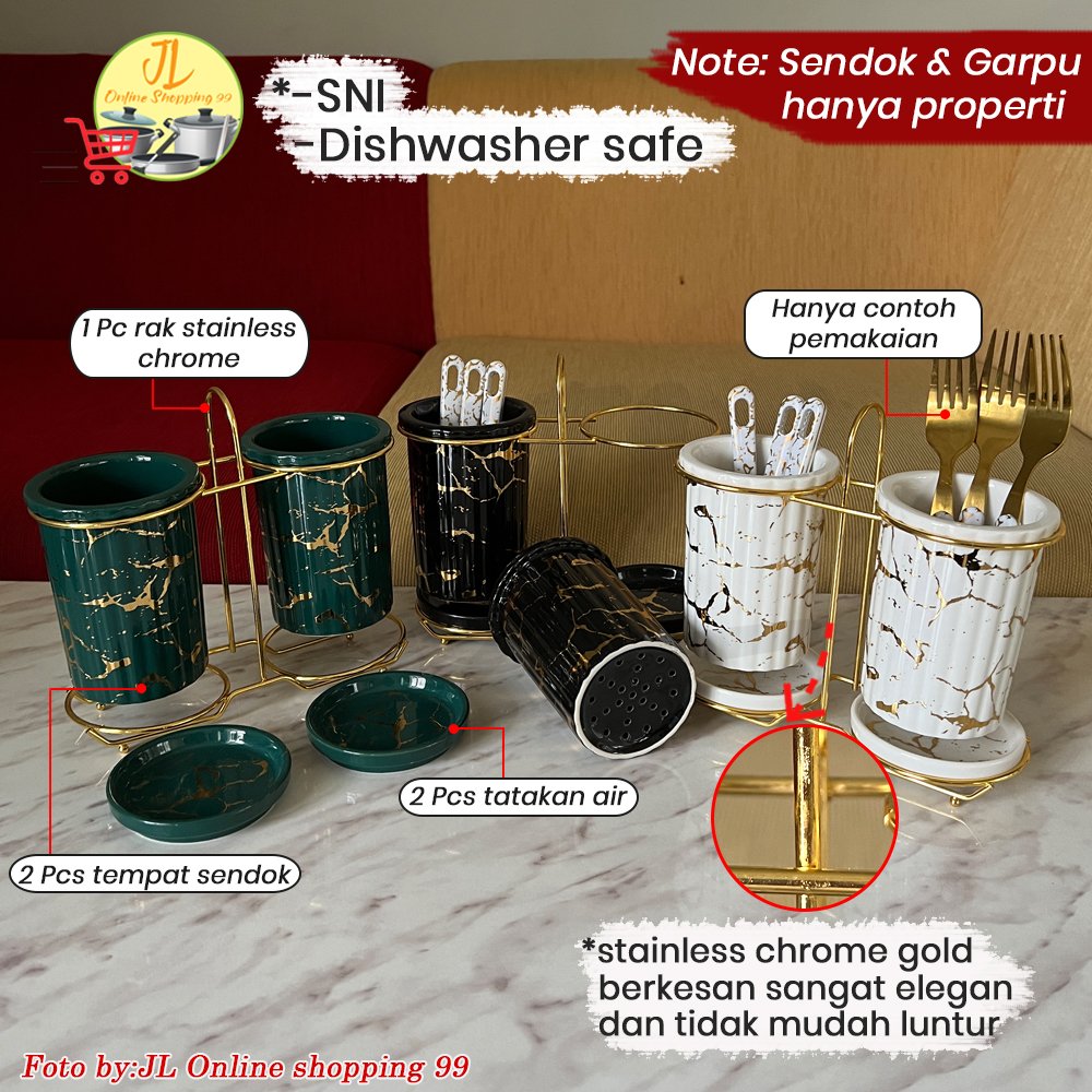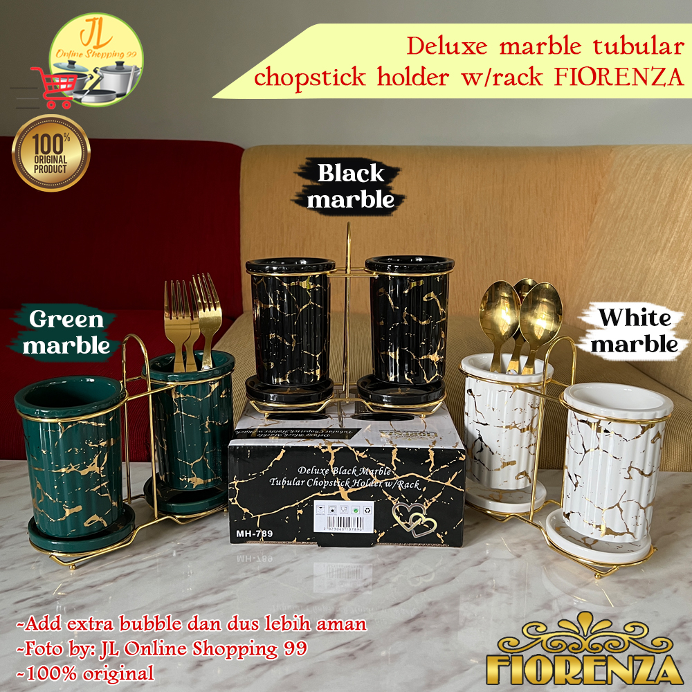 FIORENZA Tempat Sendok Garpu motif marble ceramic Set with rack MH/MP/MT-789 / wadah cutlery set