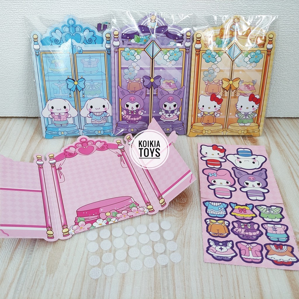 Mainan Anak Dress Up Kitty Melody Quiet Book Stiker Velcro Lemari Pakaian