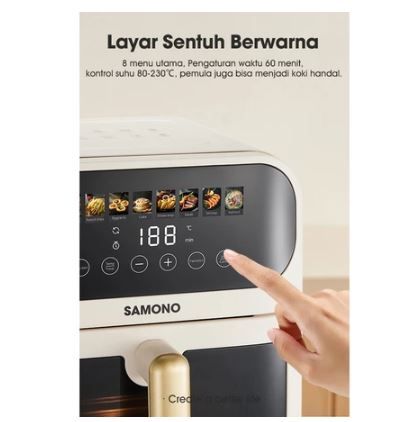 Air Fryer Low Watt Oven Touch Screen 6,5 Liter Low Watt Body Metal Dengan Kaca Garansi 1 Tahun SW-AFW65