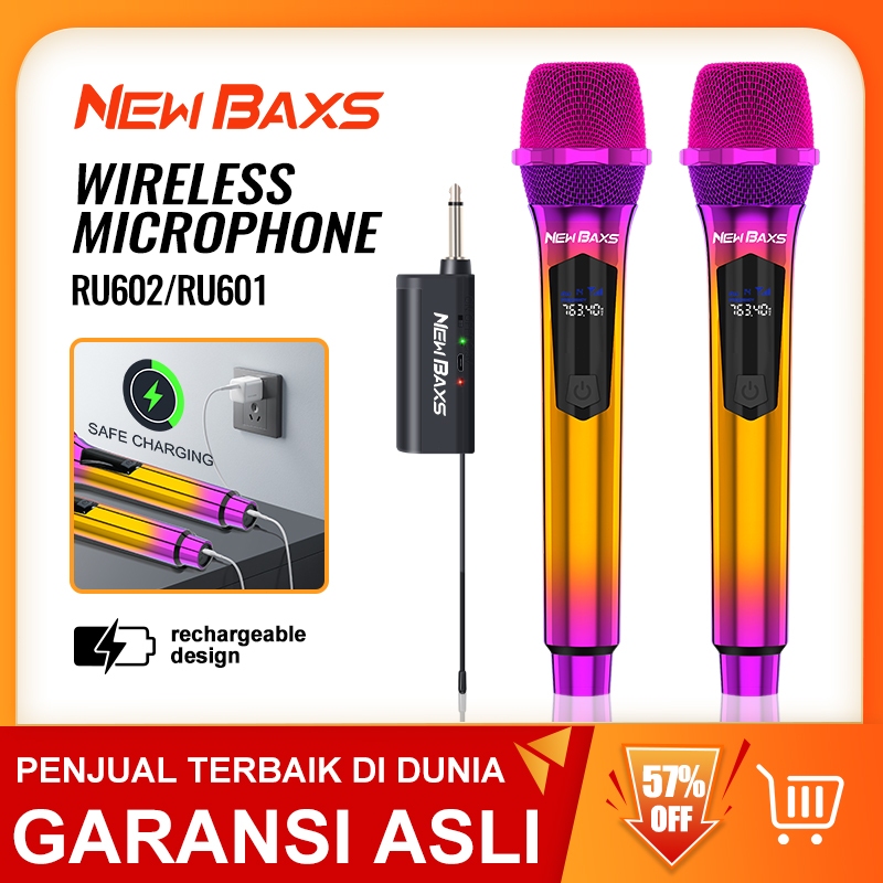 FLASH SALE NEW BAXS RU602 WIRELESS MIC KARAOKE SUARA JERNIH MIKROFON PORTABLE SET MICROPHONE NIRKABEL DUAL SYSTEM T