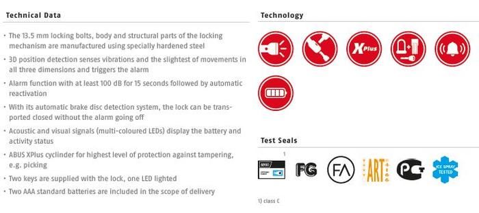 Kunci Gembok Sepeda Motor / Abus Granit Detecto XPlus 8077/RD