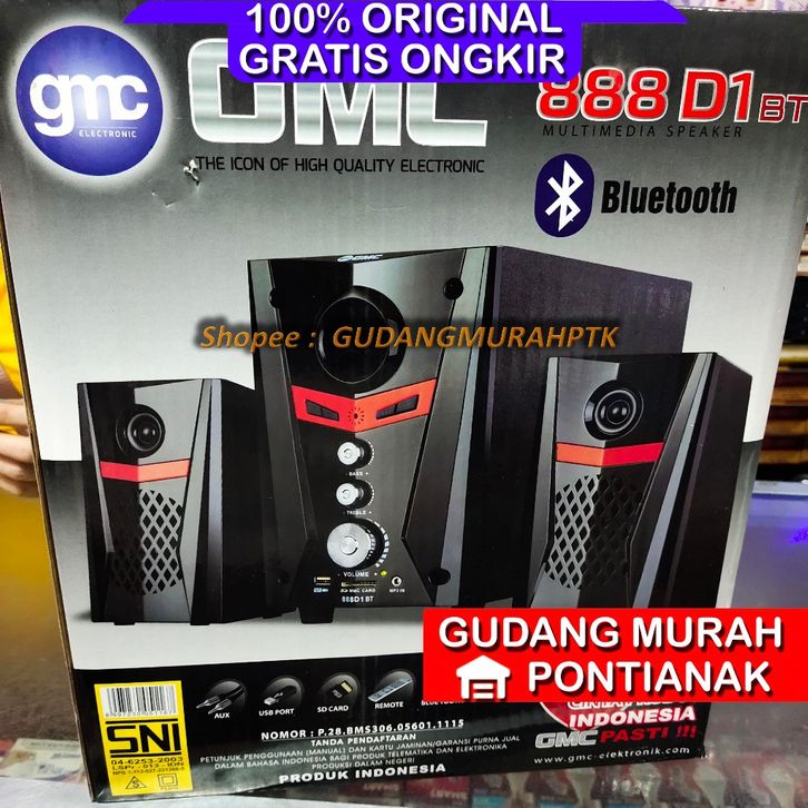 PROMO Salon Bluetooth GMC 888 D1 Multimedia BASS SUBWOOFER RADIO USB MICRO SD READER Warna Random ORIGINAL