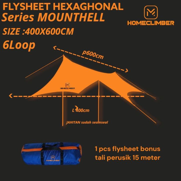 PROMO Flysheet Hexaghonal 4×6 meter Flysheet hexaghonal segi 6 size 400cmx600cm atap tenda camping flysheet segi