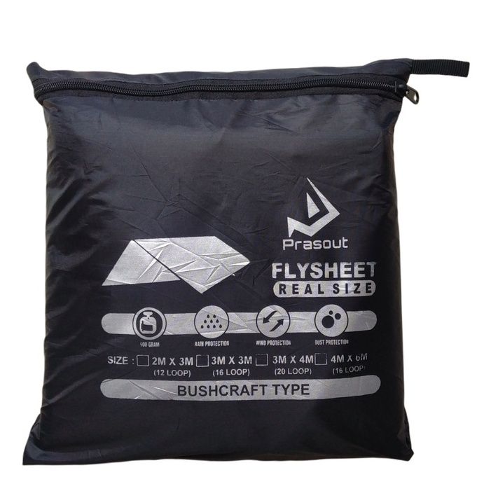 GROSIR Paket Flysheet 4x6 M Prasout / Flysheet 4x6 m - Tarp Pole 2 m - Tali Prusik 10 m - Pasak Tenda ugefr