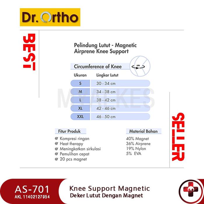 Deker Pelindung Lutut / Knee Support Magnetic Dr. Ortho AS-701