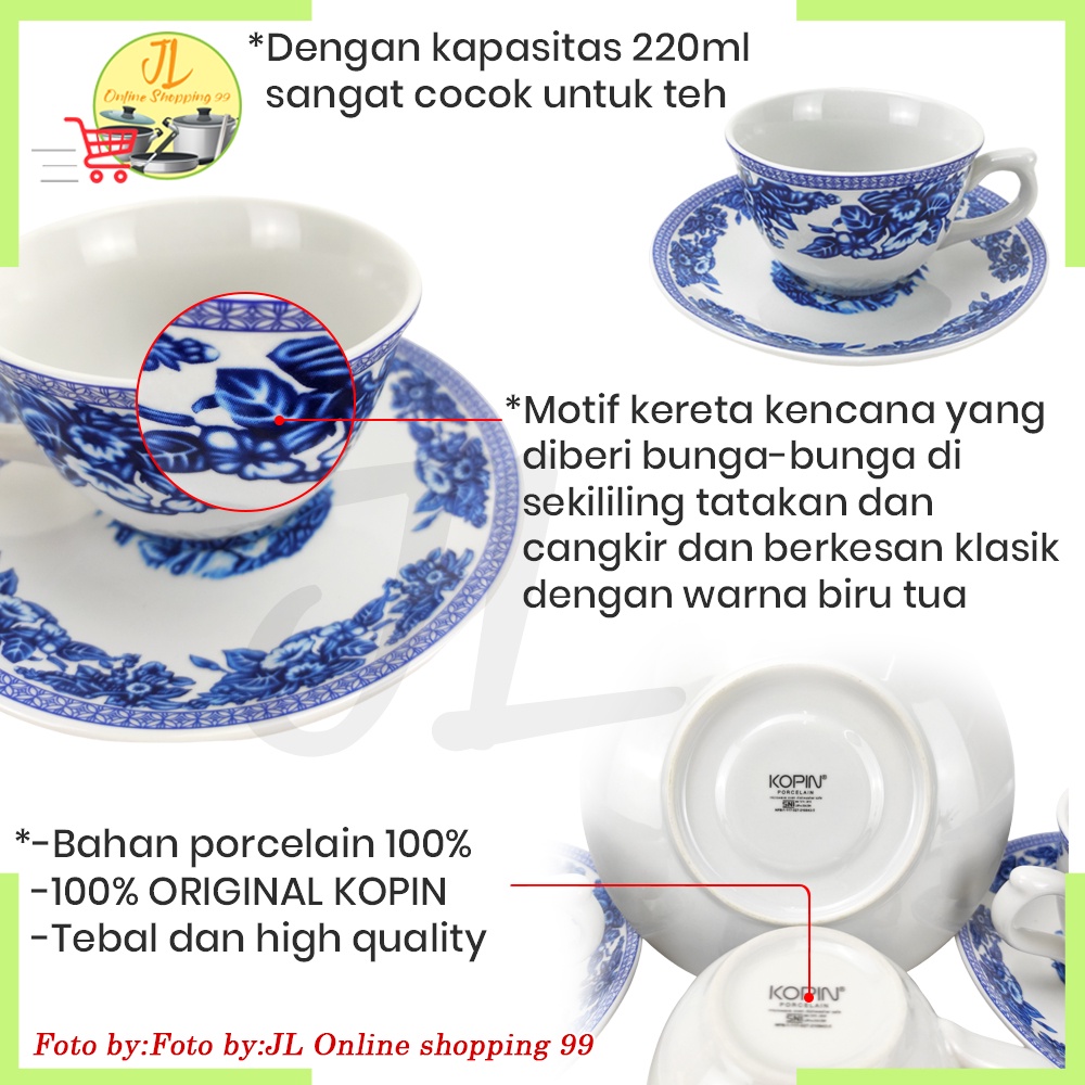 KOPIN cangkir set 6 pasang motif kereta kencana KPC-04 /coffee tea set cup and saucer porcelain