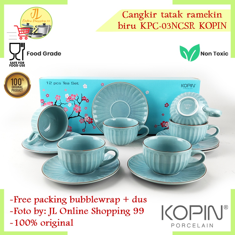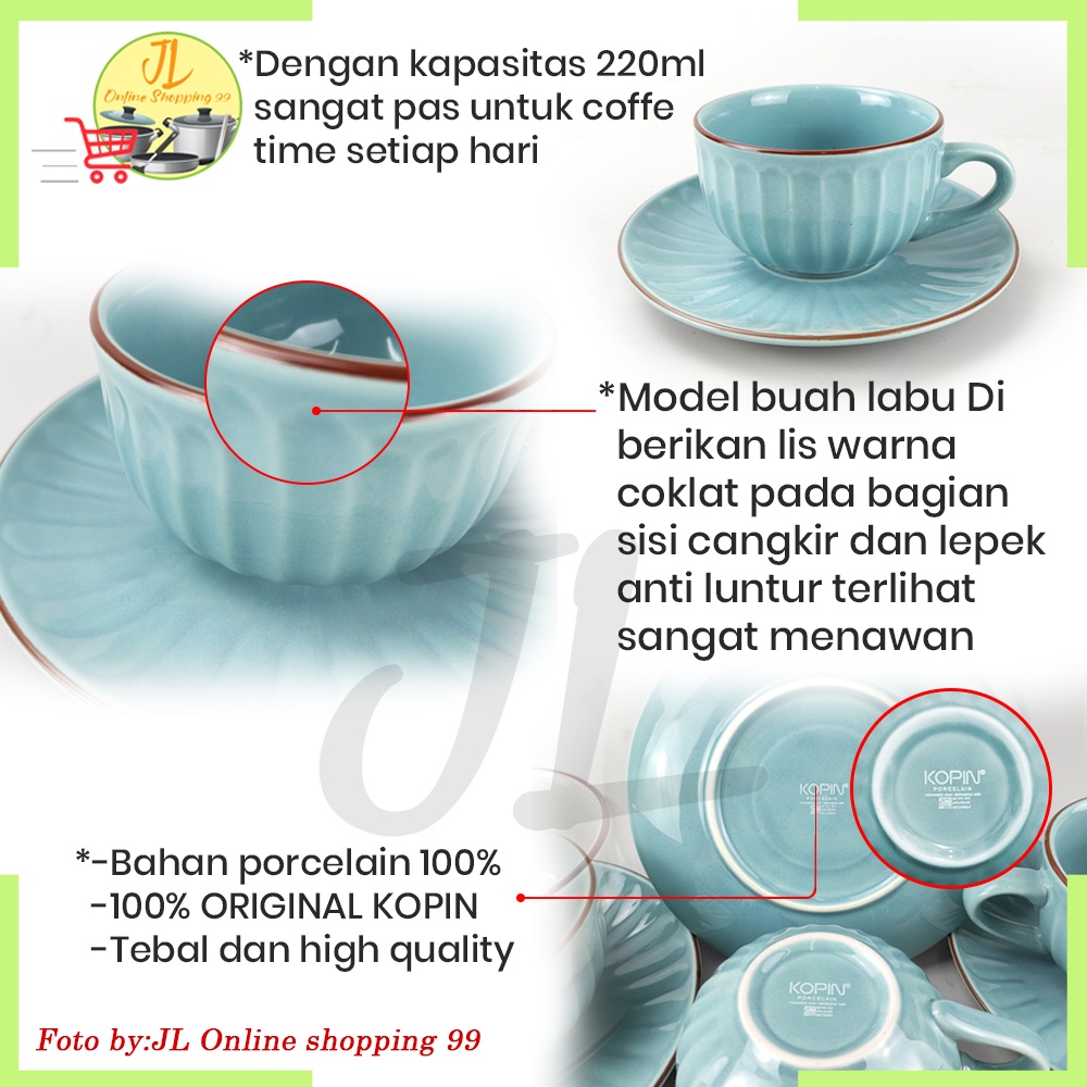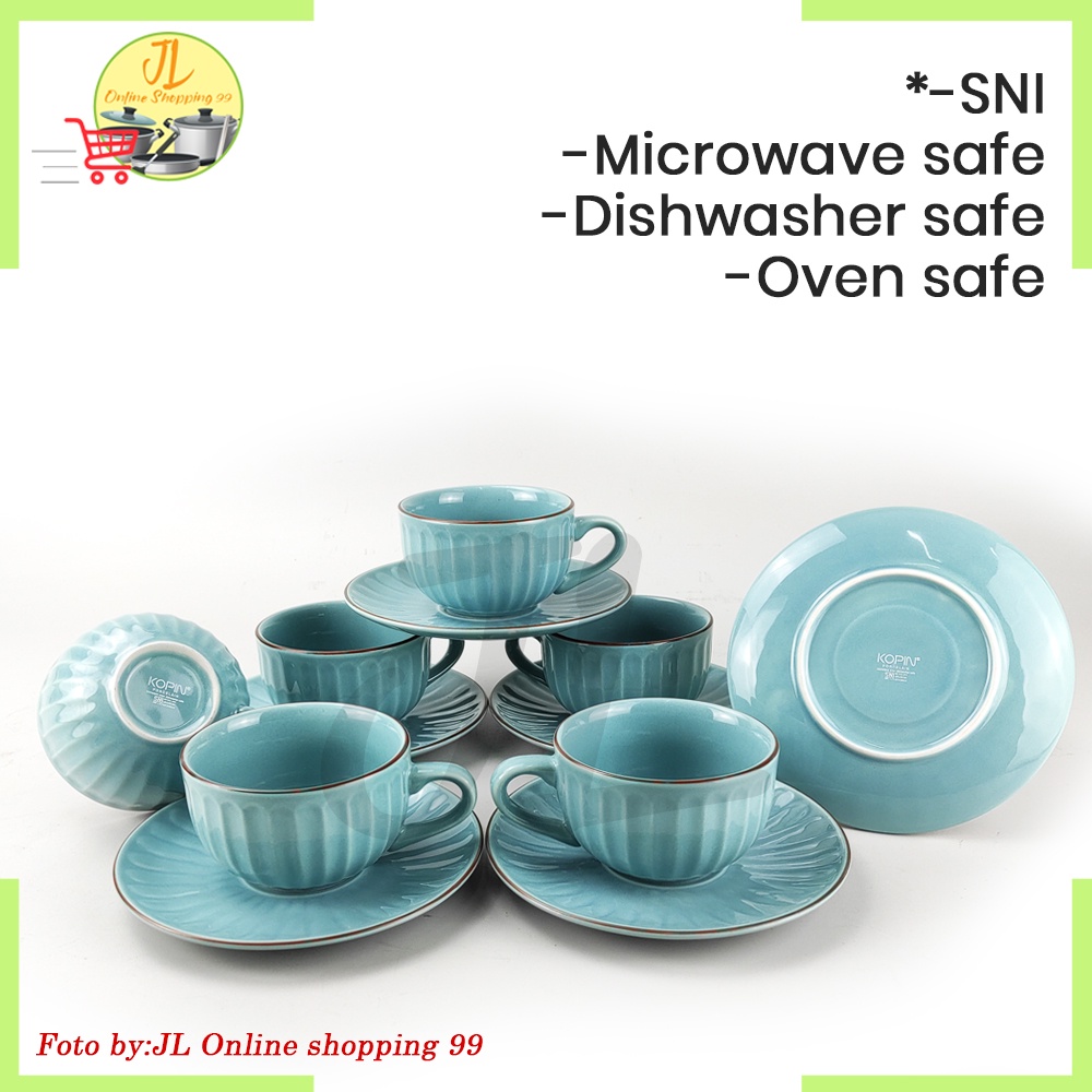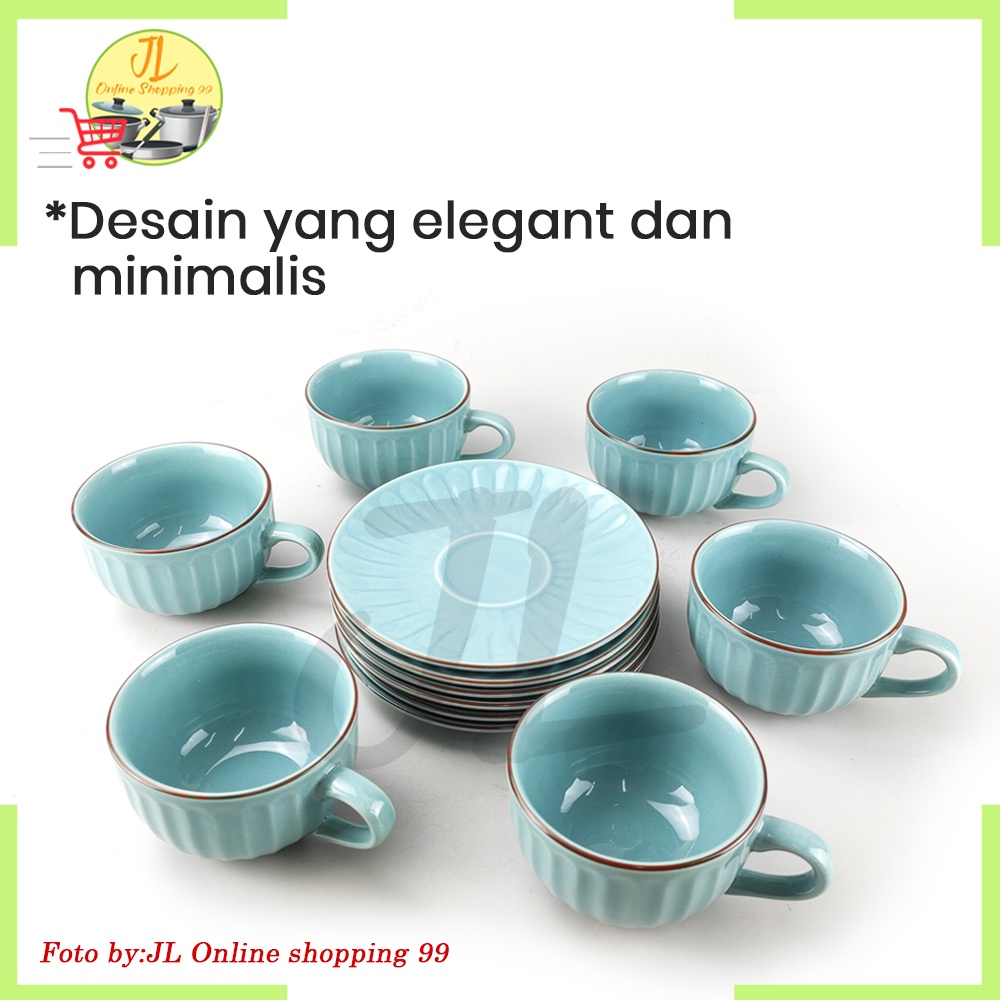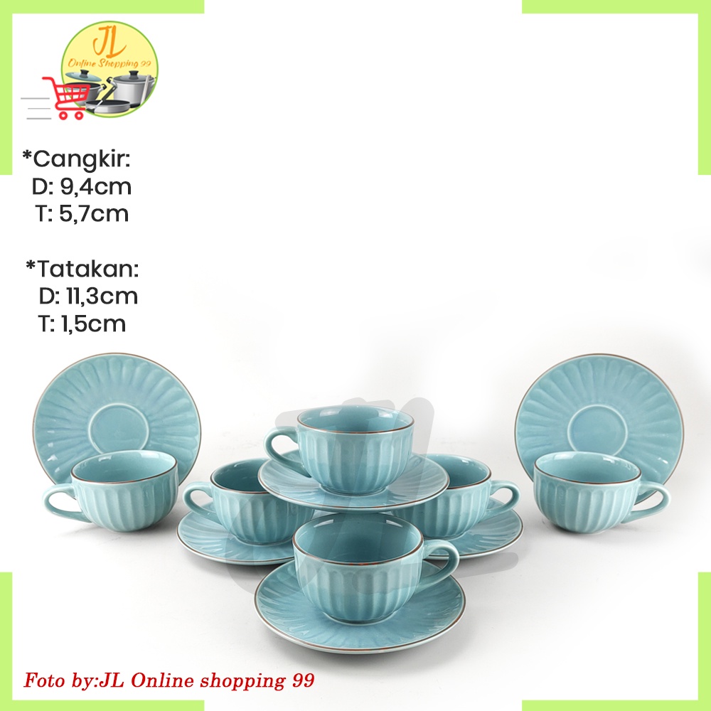 Cangkir set 6 pasang Biru keramik / cangkir set / Coffee tea set cup and saucer motif labu KOPIN KPC-03 NCSR
