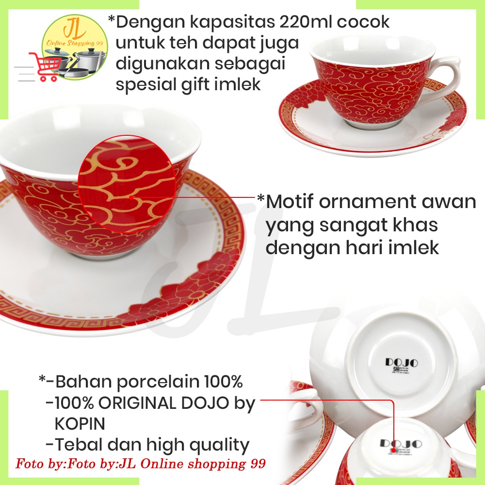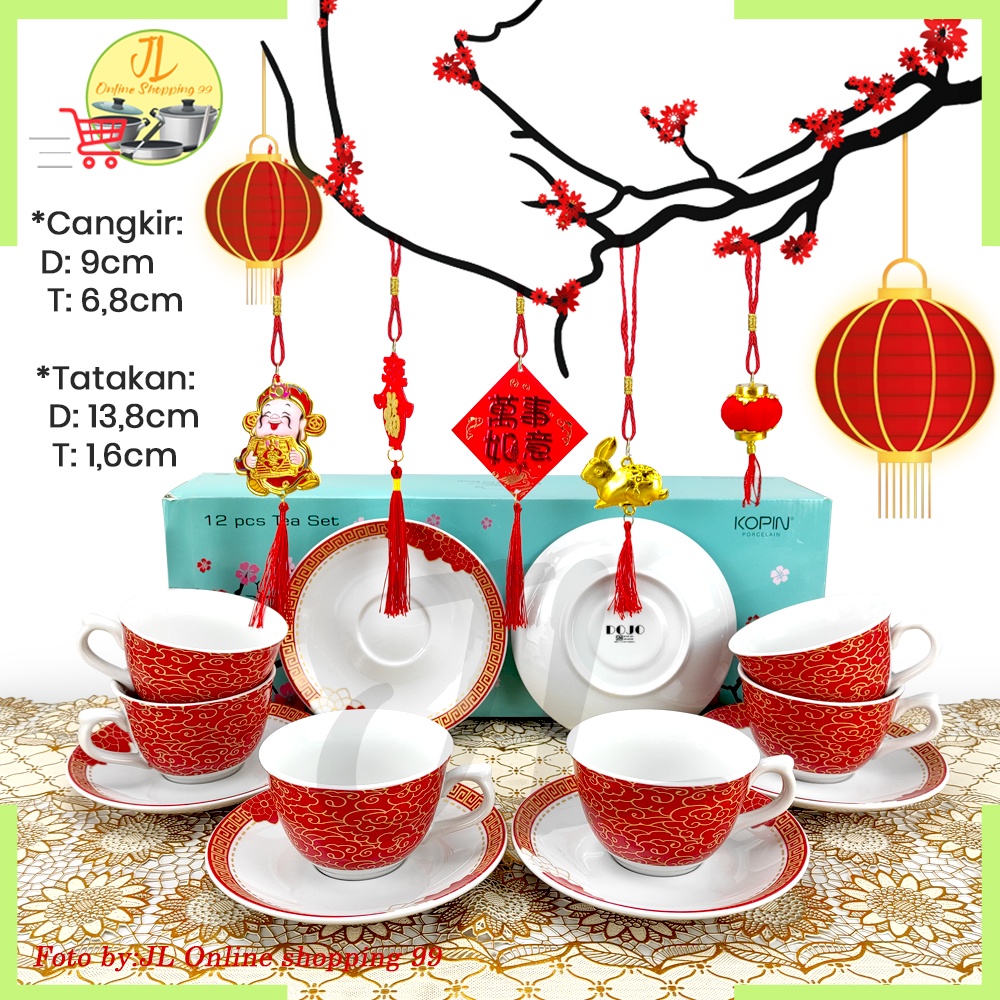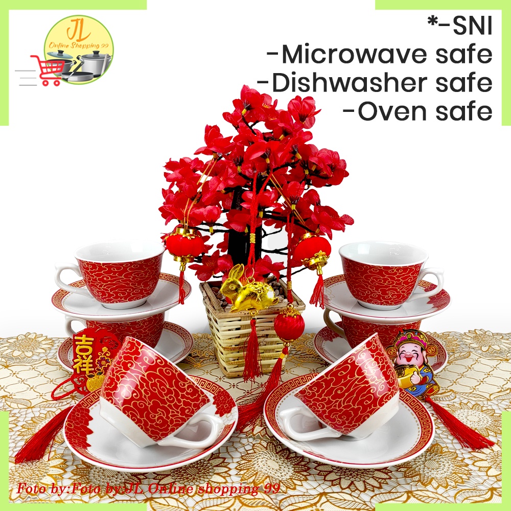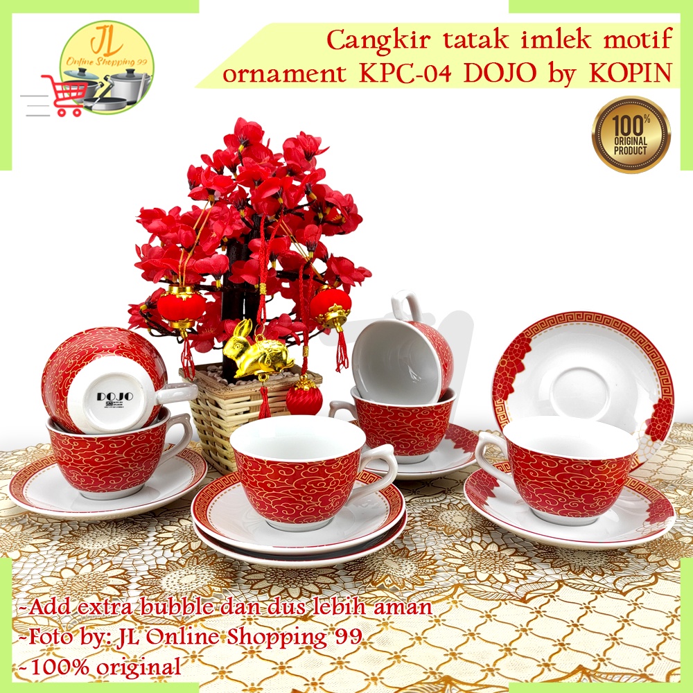 KOPIN cangkir set 6 pasang imlek series CNY motif Ornament KPC-04 / coffee tea set cup and saucer porcelain