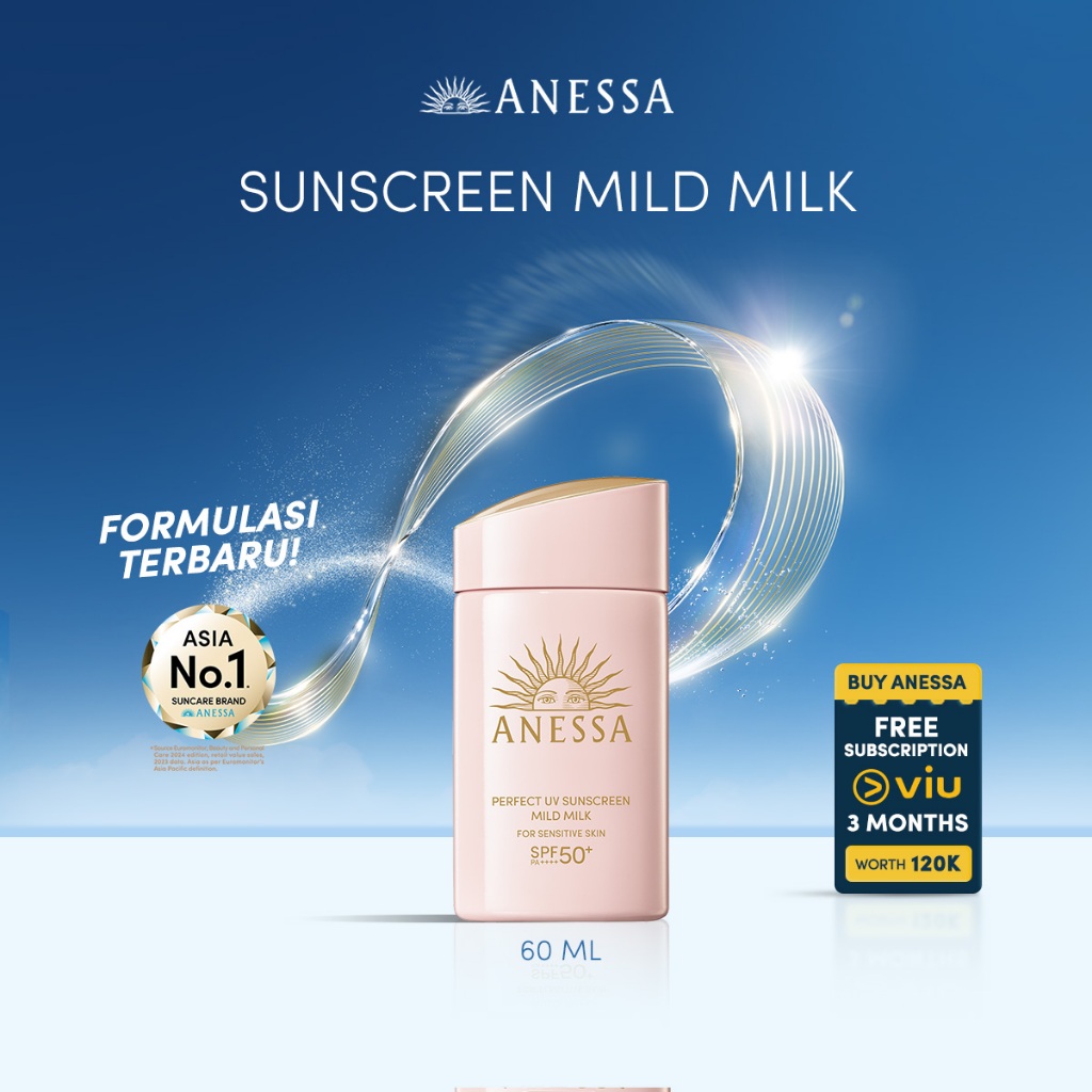 SUNSCREEN ANESSA PERFECT UV MILD MILK 60ML - SUNSCREEN KULIT NORMAL / BERMINYAK SPF 50+ PA++++ BEST SELLER