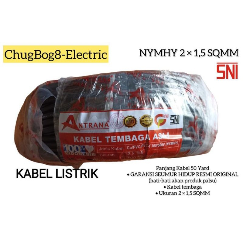 FLASH SALE KABE LISTRIK ANTRANA NYMHY SERABUT TEMBAGA ASLI 2X075 & 3 X1 5 50 YARD