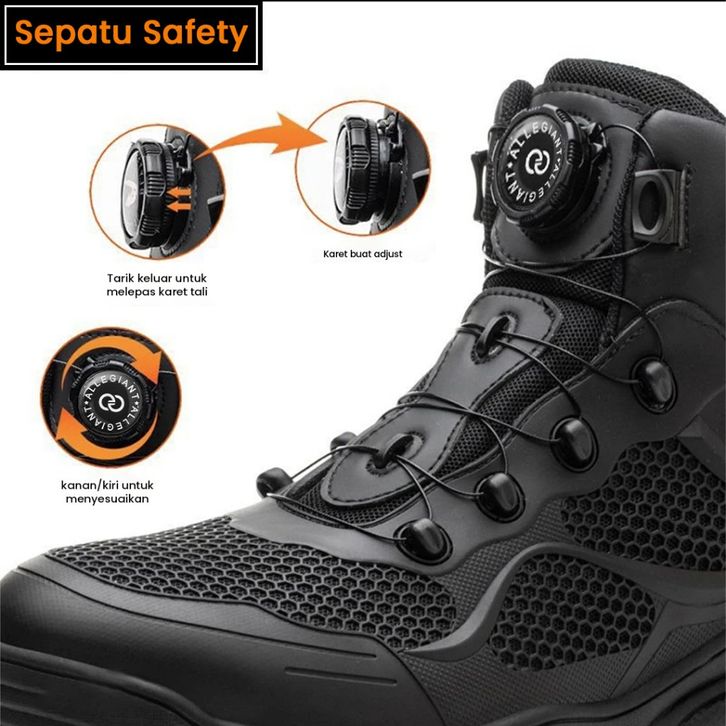 Sepatu Safety Boots Shoes Tali Putar Sporty Hitam Pria Wanita Tactical Outdoor Ringan