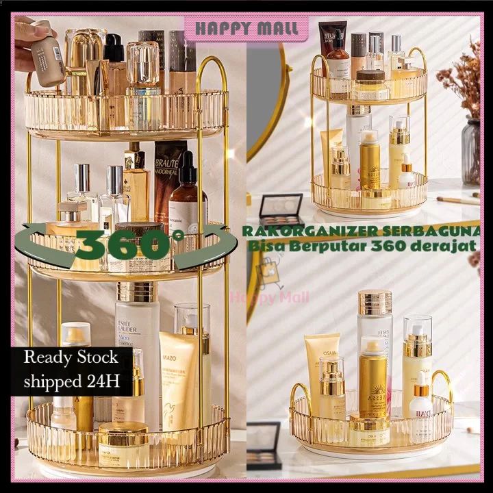【HARGA TERENDAH】 Rak Makeup Gold / STR / Rak Gold / Sea Lazy Rak Rotating 360" makeup Organizers Perfume