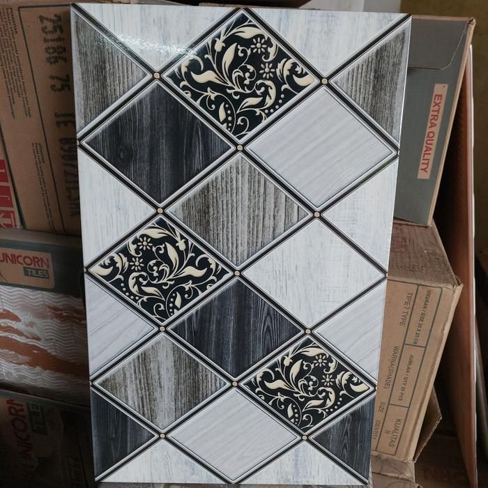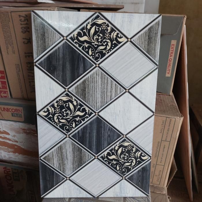 Promo KERAMIK DINDING 25X40 GLOSSY ABU MOZAIK BATIK tipe 2 Keren