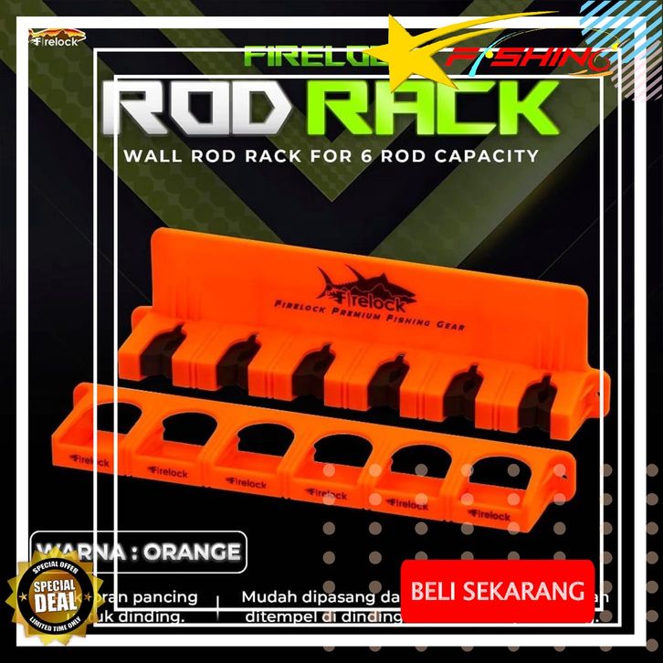 BEST SELLER Rod Rack Tempat Rak Gantung Joran Tempel Dinding 6 Slot Firelock berkualitas terbaik