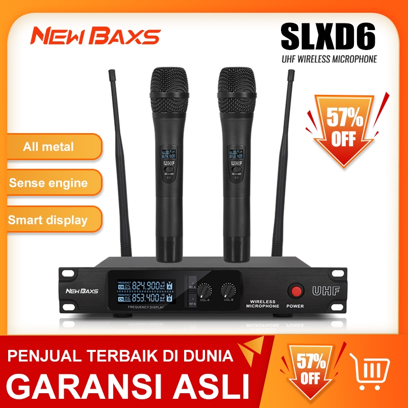 FLASH SALE NEW BAXS MIKROFON NIRKABEL SLXD6 2MIKROFON GENGGAM UHF FM JARAKPENERIMAAN 80M PERALATAN AUDIO PROFESIONAL