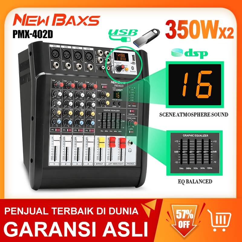 FLASH SALE NEW BAXS MIXER AUDIO PROFESIONAH PMX402DPMX402S 4 SALURAN DENGANEFEK 16DSP BAWAAN PENGUAT DAYA 350WATT 2