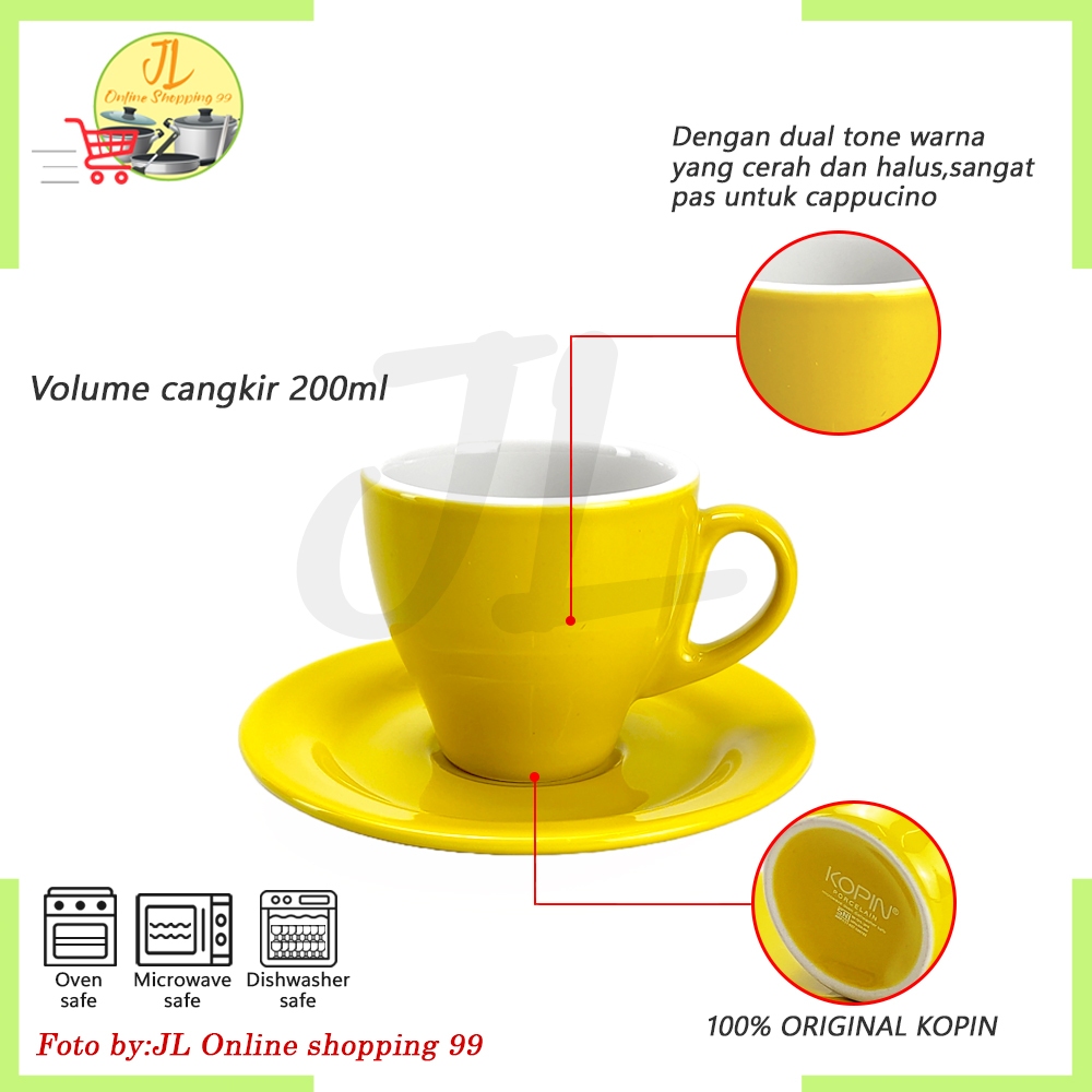 KOPIN cangkir set 6 pasang warna Kuning KPI-01 TWO TONE KOPIN 200CC / tea cup / gelas cappucino