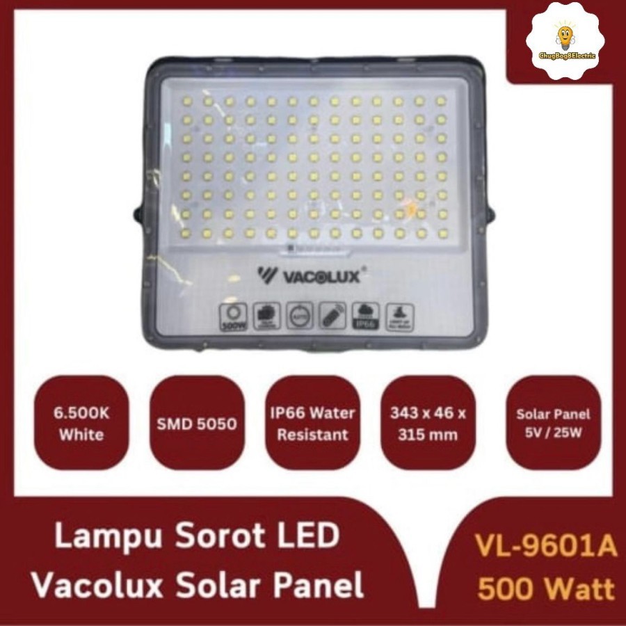 FLASH SALE VACOLUX LAMPU SOROT 500 WATT SOLAR PANEL IP66 VL9601A SMD LED