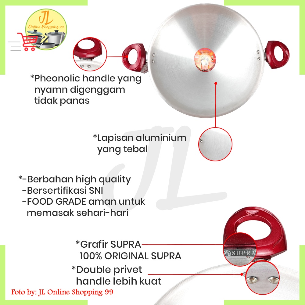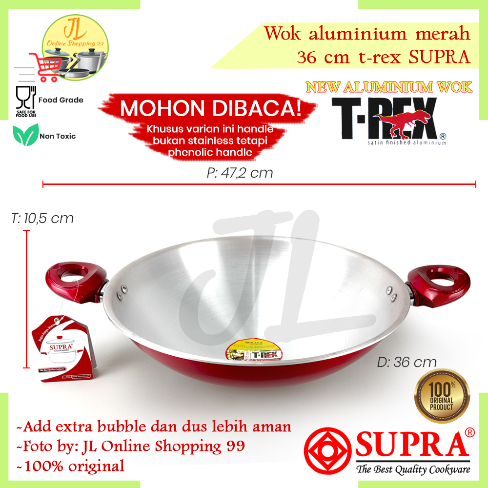 Wok 36cm SUPRA Merah / Wajan masak kuali alumunium handle tahan panas seri T-REX