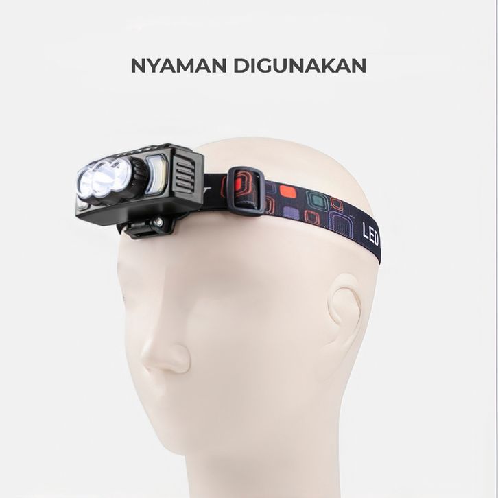 Senter Kepala Headlamp 7 Mode 1200mAh Super Terang Anti Air Senter LED HX-810