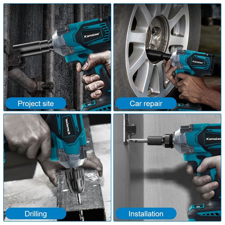 Impact Wrench Kamolee 1800N.M/1200N.M/520N.M High Torque 1/2”1/4” Electric Wrench for Auto Repair (Battery + Toolbox)