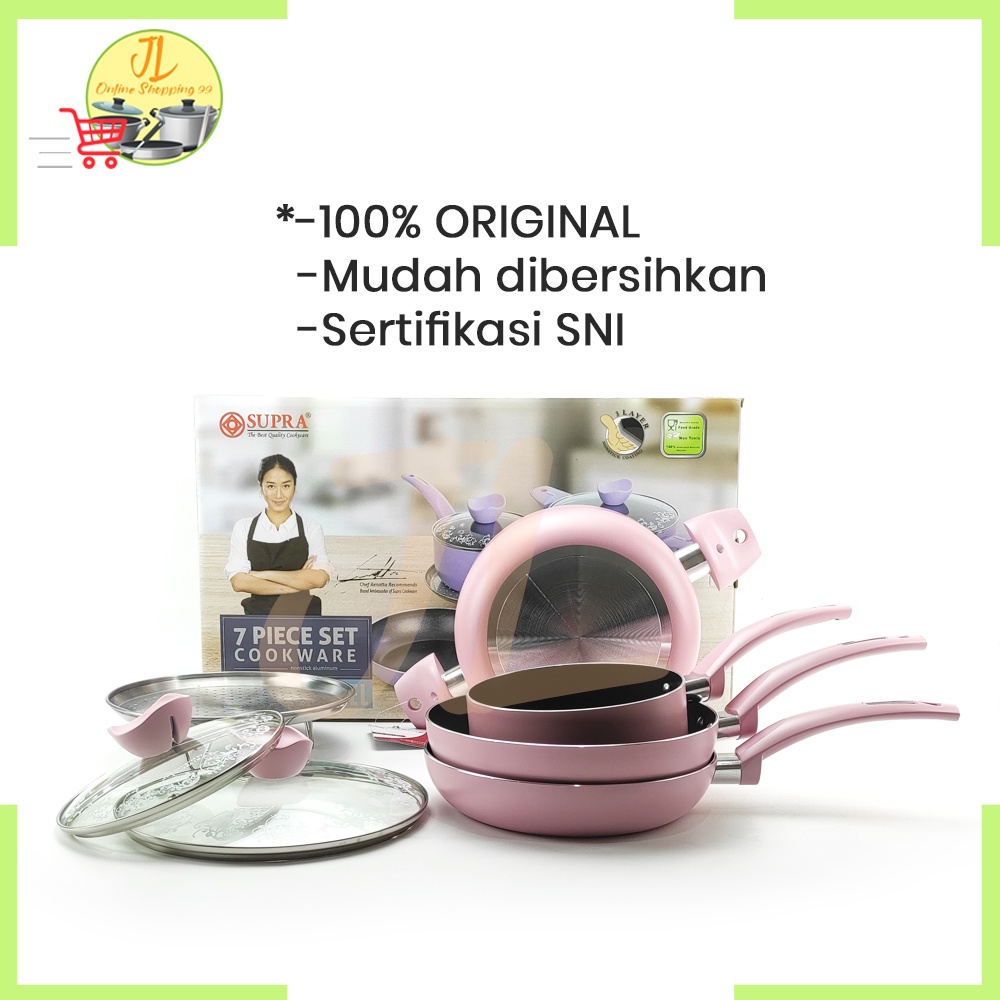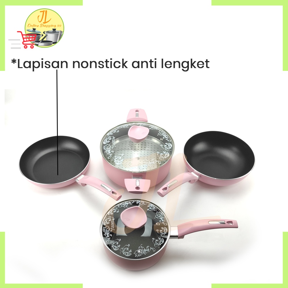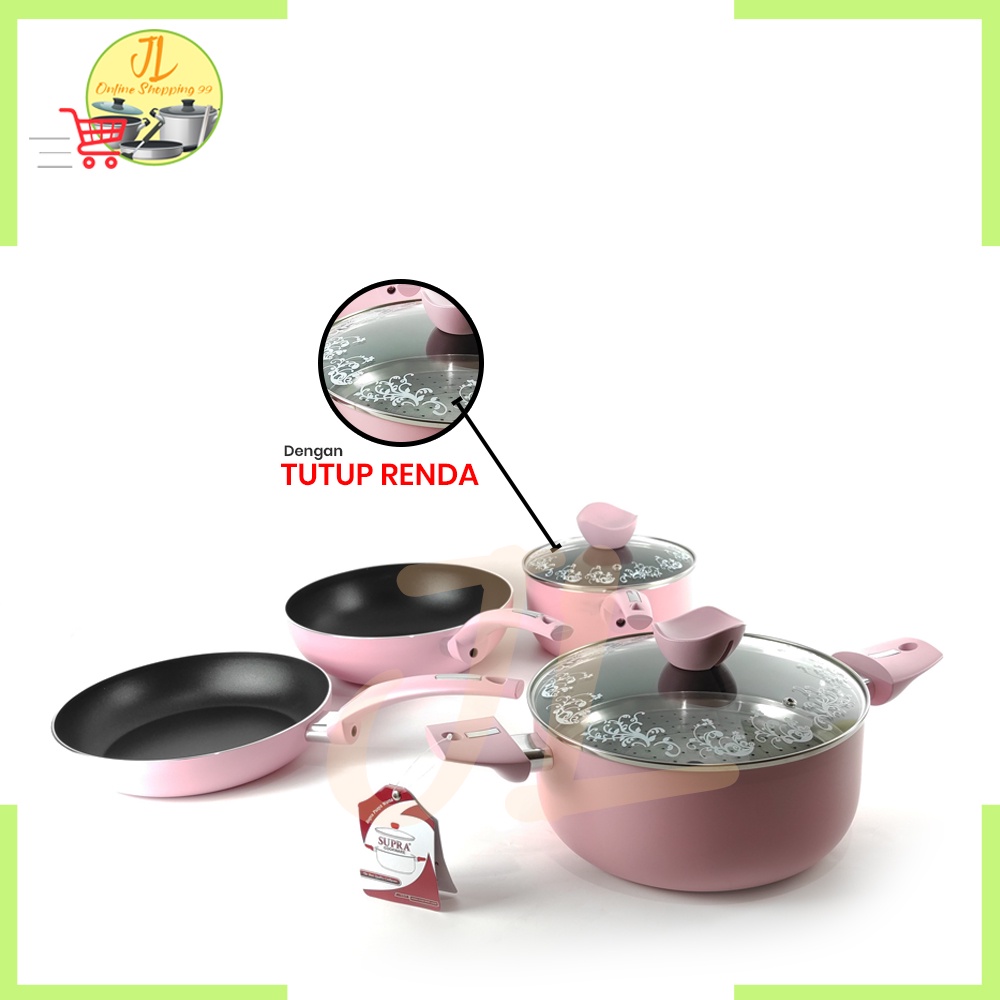 Wajan set anti lengket teflon / 7pcs cookware set pastel Pink SUPRA