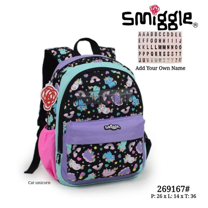 Tas Smiggle Original Sekolah Anak TK SD Laki Perempuan Junior ID Custom Name Backpack Medium Import Kekinian Berkualitas