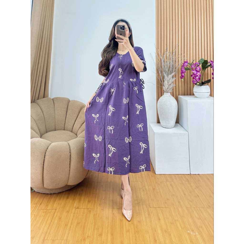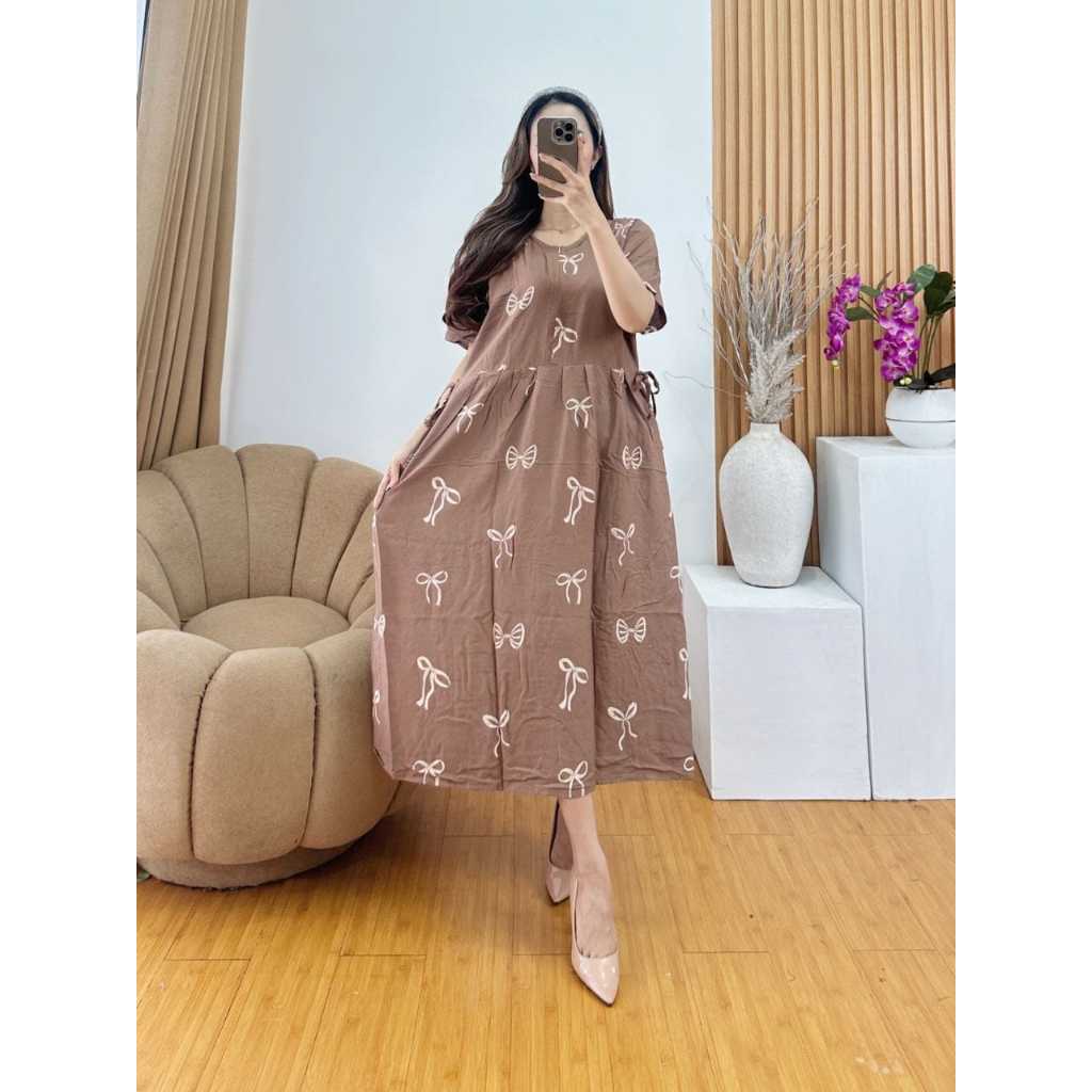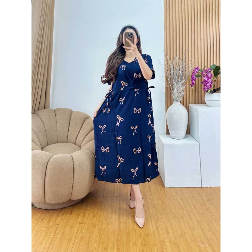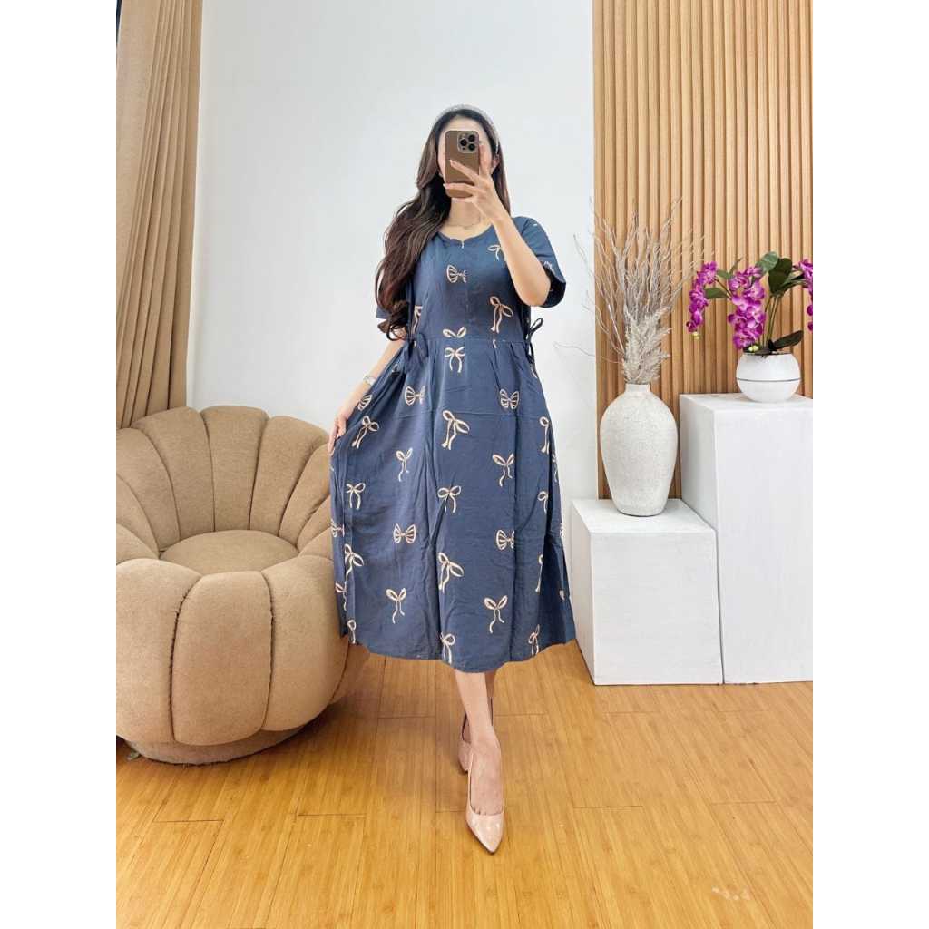 LUXE - GAUN HITAM MOTIF BUNGA PITA DASTER WANITA RAYON GRADE A BUSUI RESLETING DEPAN BAJU TIDUR DASTER KEKINIAN