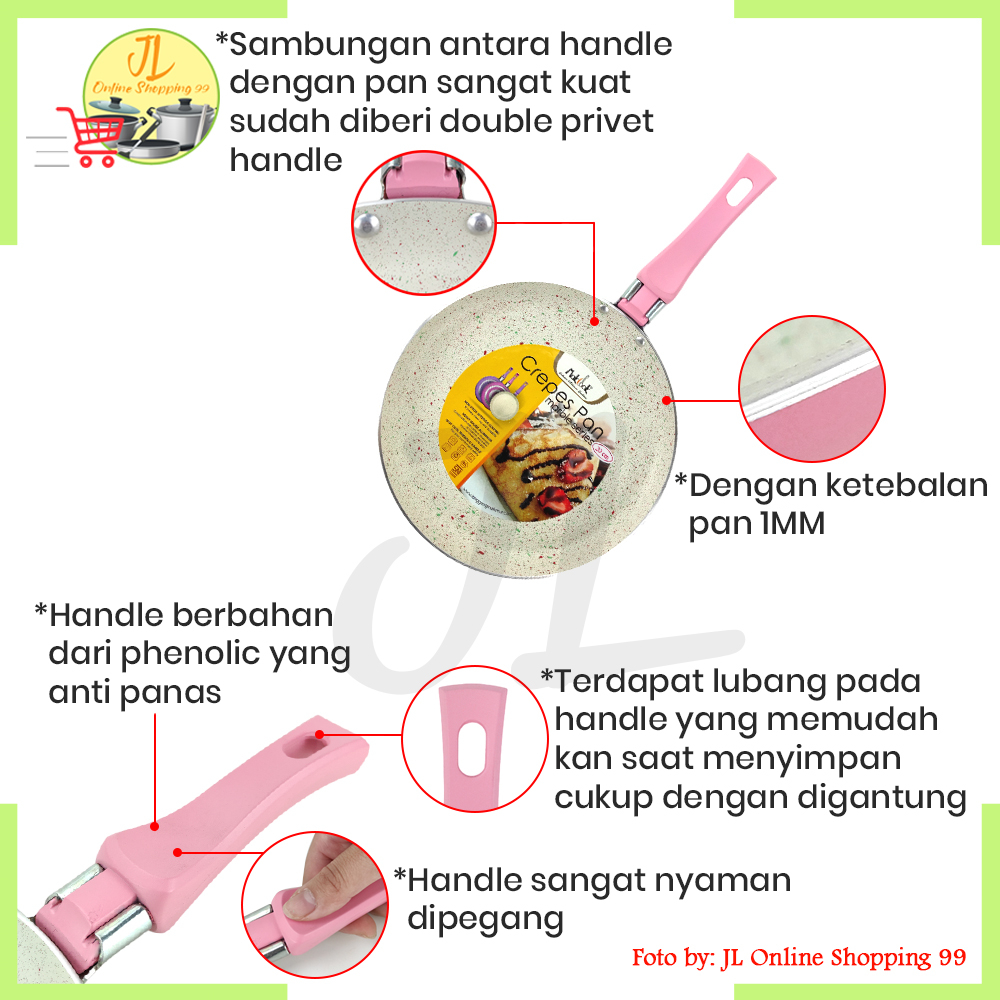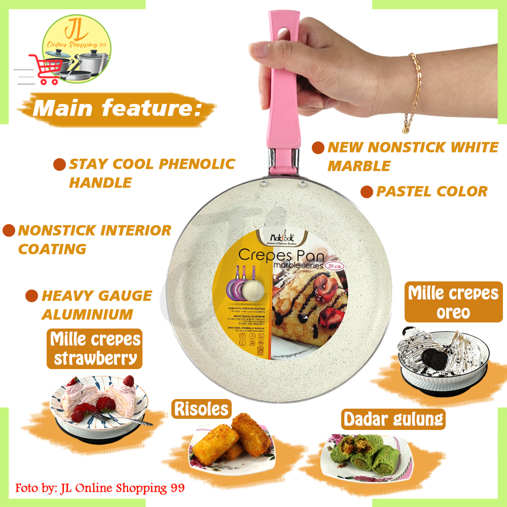 MAKCOOK crepes pan 25cm pastel Pink white marble series / wajan walik anti lengket