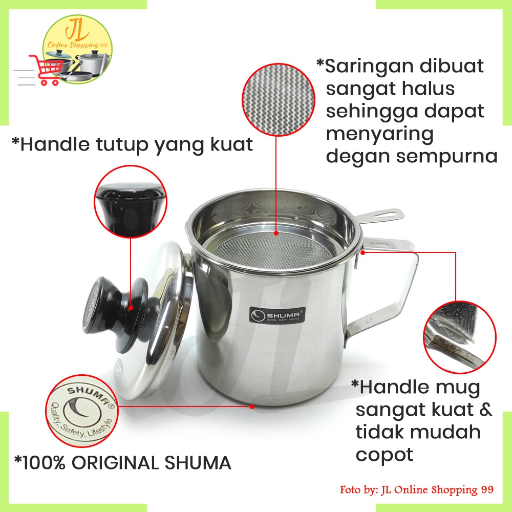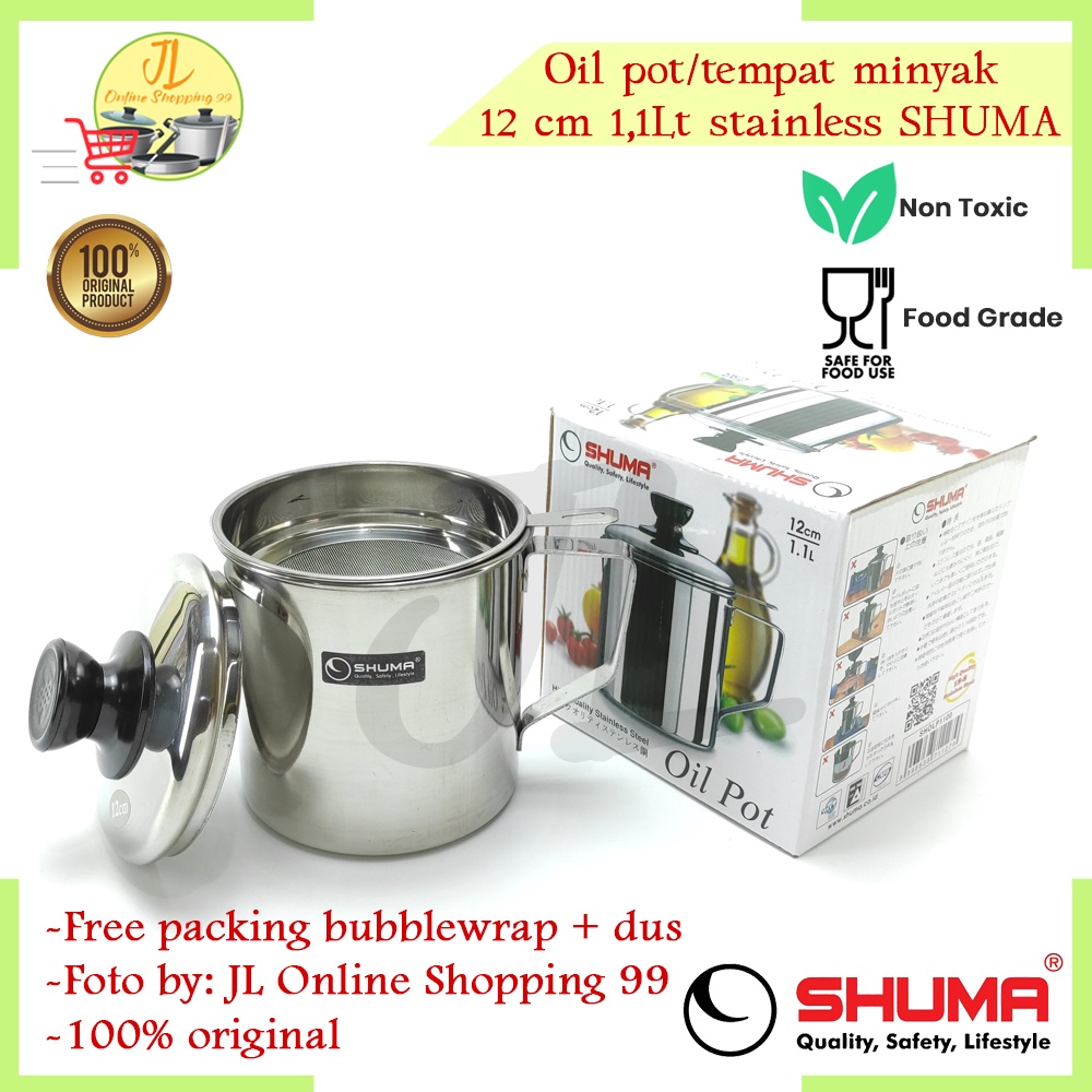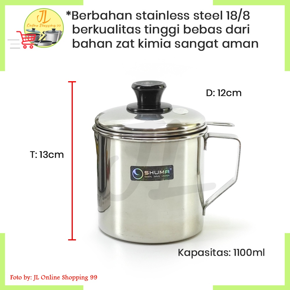 Oil pot 12cm 1,1liter stainless SHUMA / Tempat minyak / Tempat saringan minyak bekas