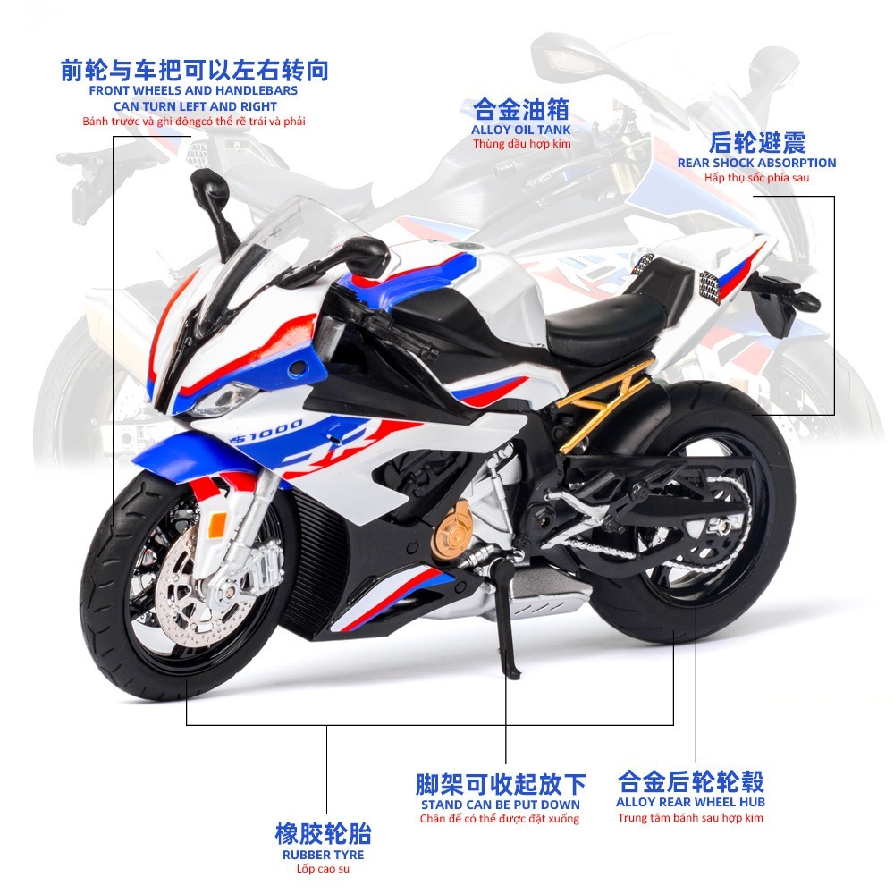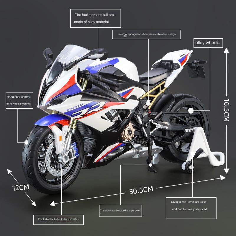 Diecast Motor BMW S1000RR Skala 1:9 dan 1:12 ada Suara dan Lampu Cocok buat koleksi atau Hadiah Anak
