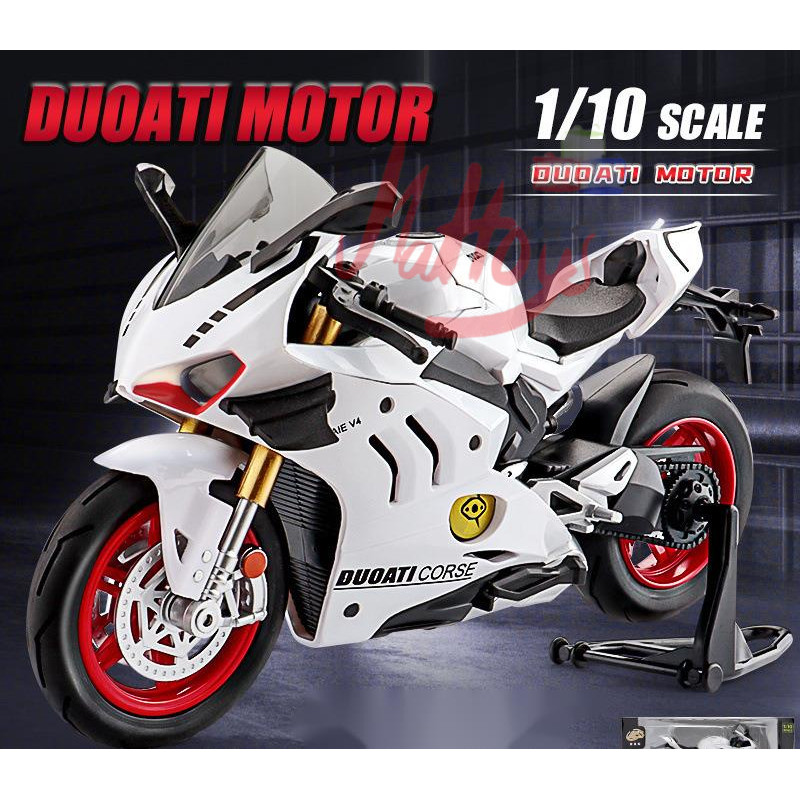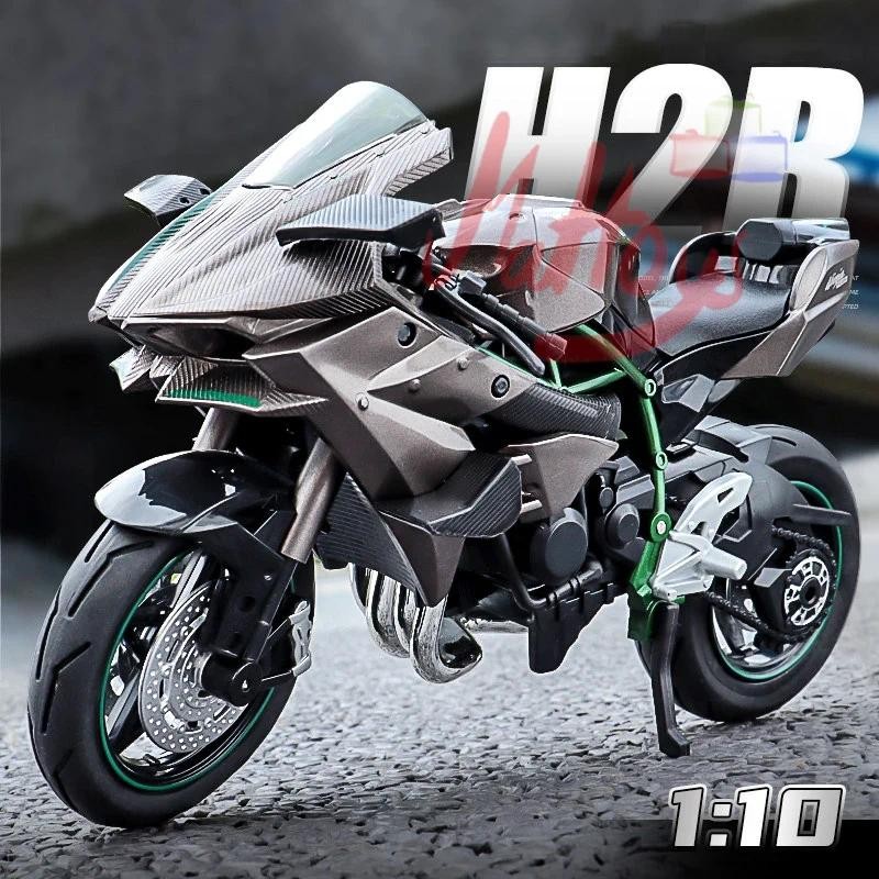 1:10 Diecast Kawasaki Ninja H2R BMW S1000RR Ducati Panigale V4s Motor Miniatur Suara Lampu Pajangan