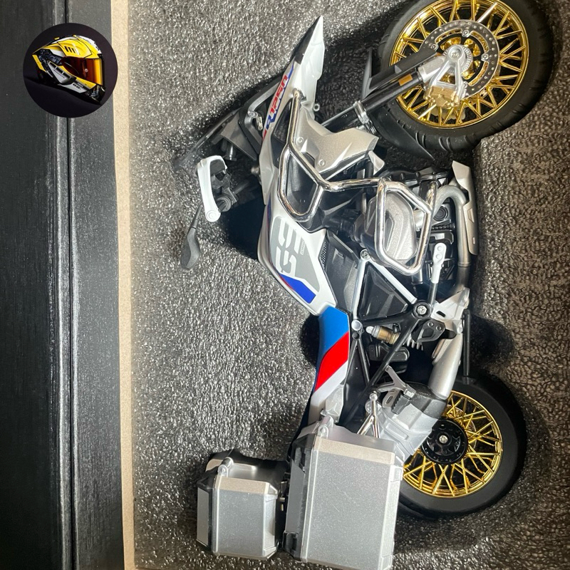diecast miniatur motor bmw GS1250 dengan box skala 1/9